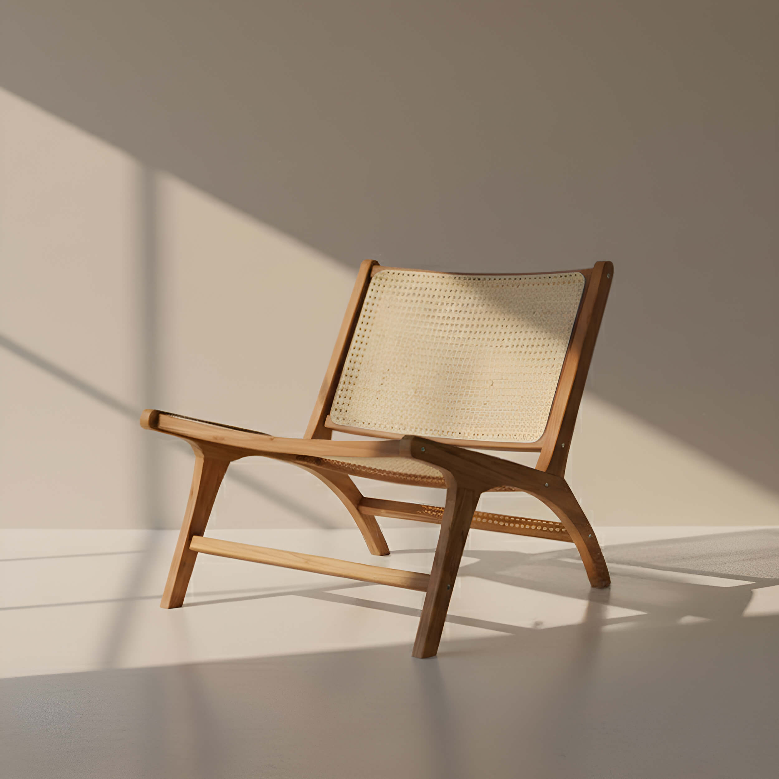 Fauteuil en teck et tressage cannage en rotin