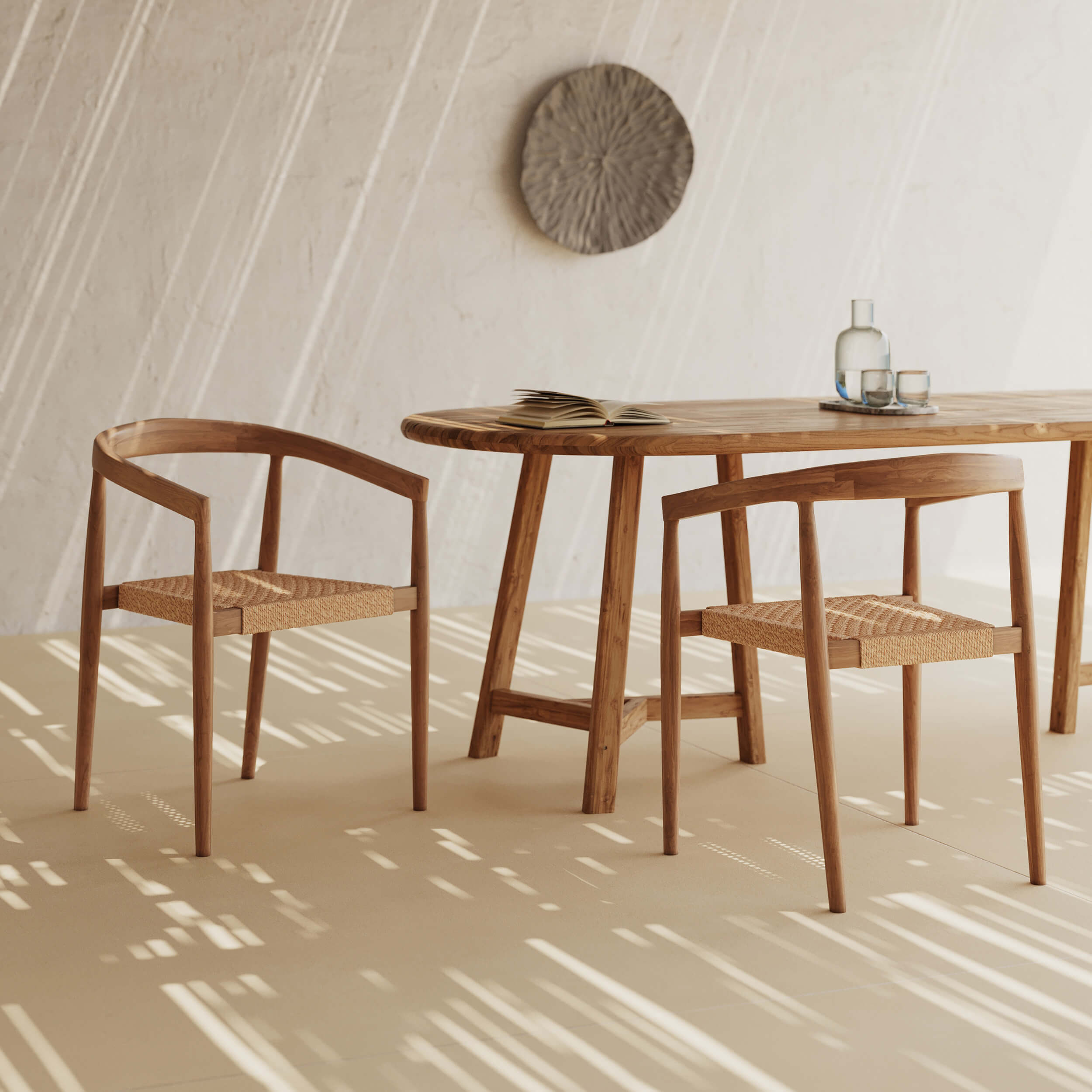 Fauteuil en bois de teck finition noyer et cannage en rotin