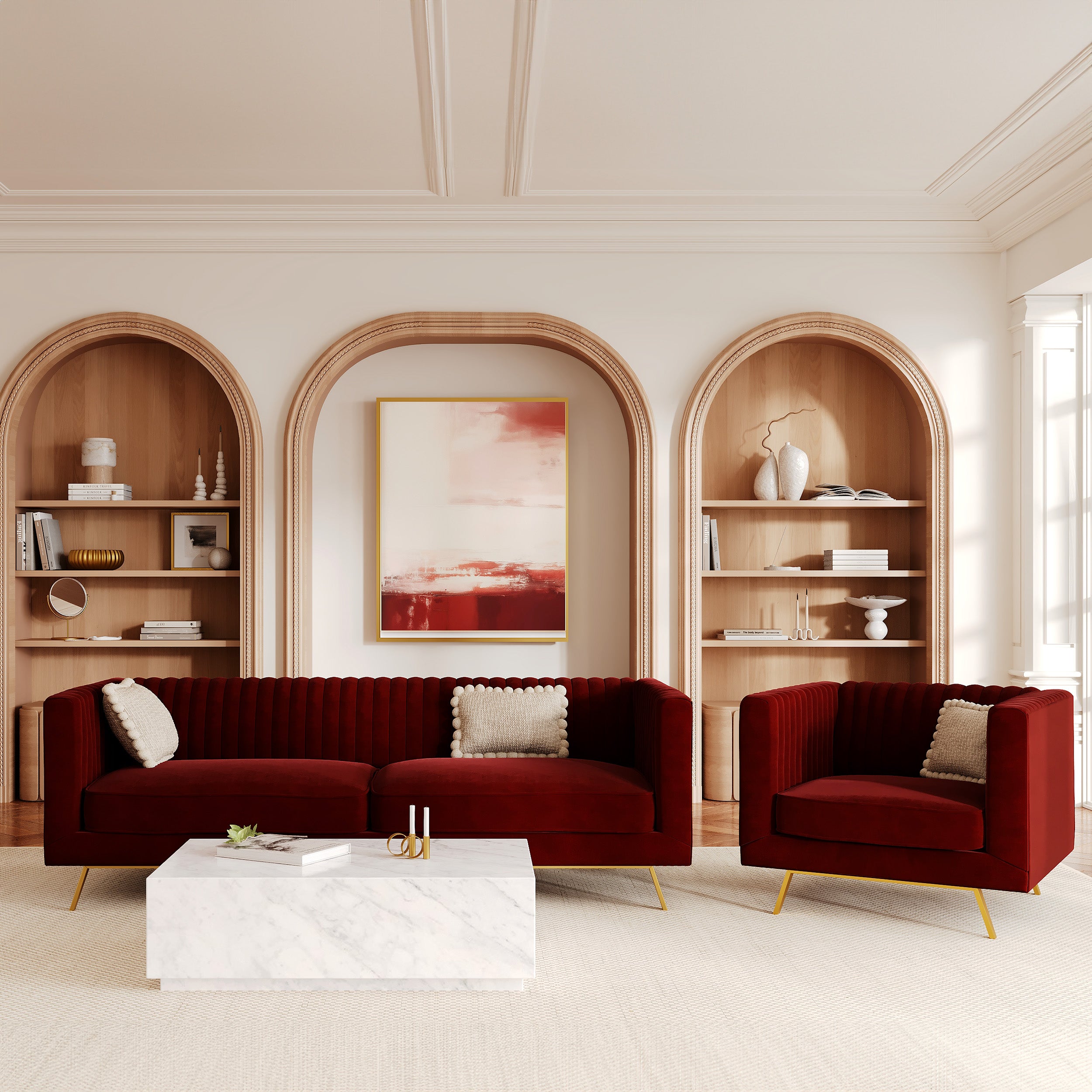 3-Sitzer-Sofa aus bordeauxrotem Samt