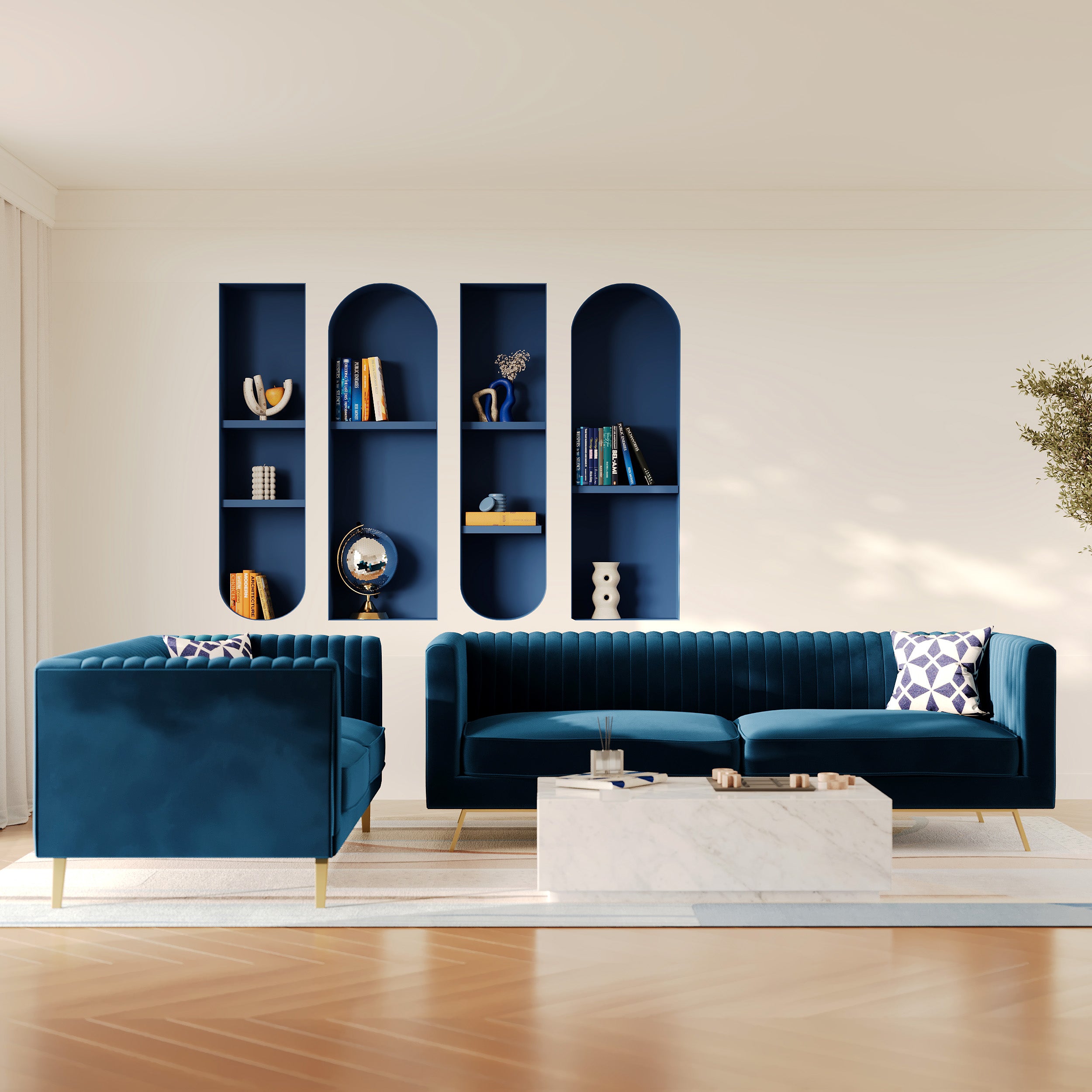 Pack Sofa und Sessel aus blauem Samt 3-Sitzer