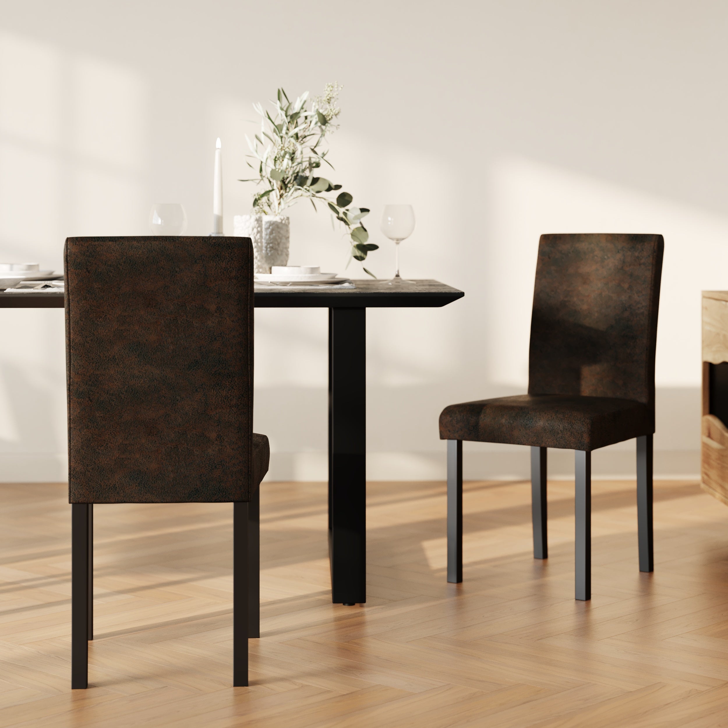 Set aus 2 Stühlen aus taupefarbenem Kunstleder und schwarzem Metall