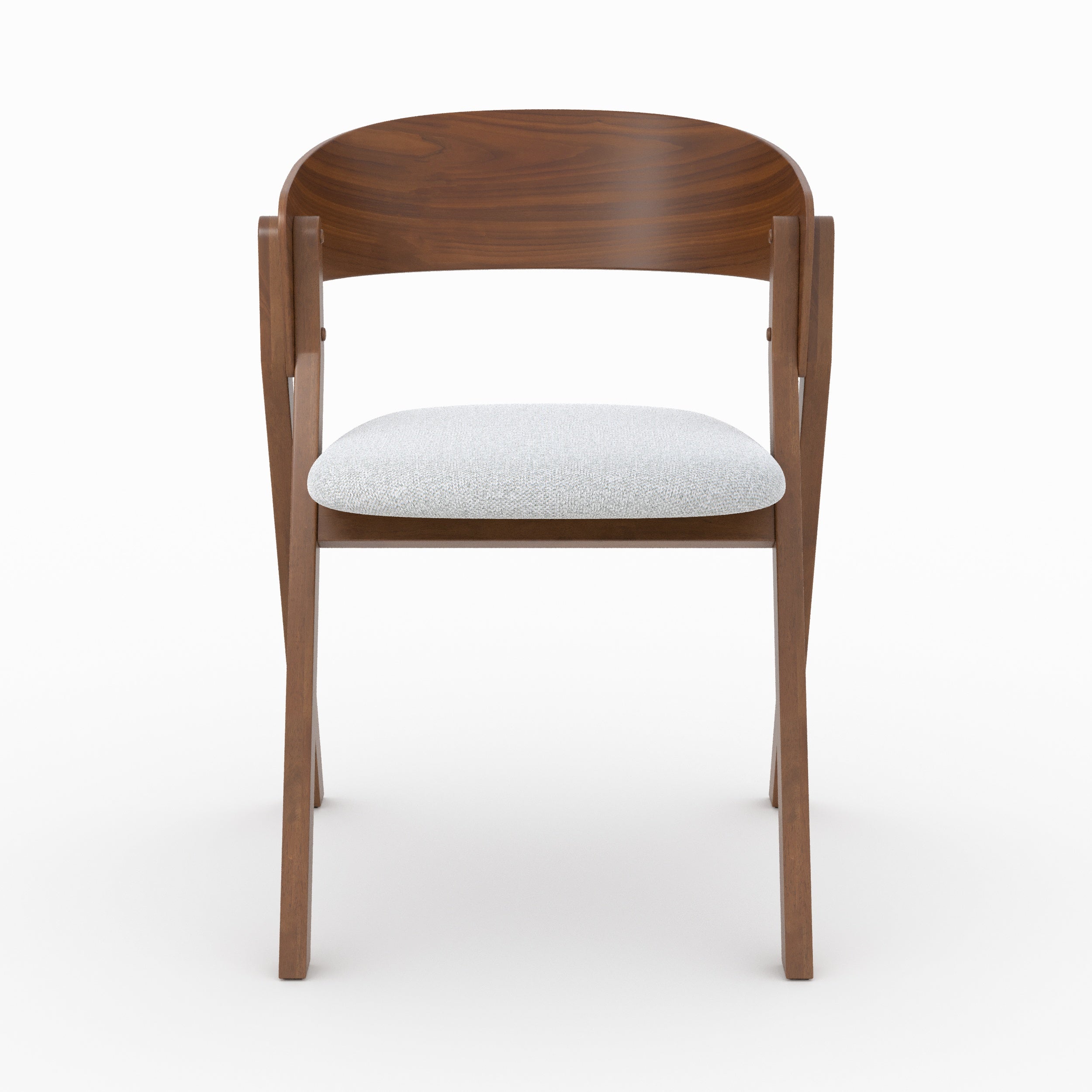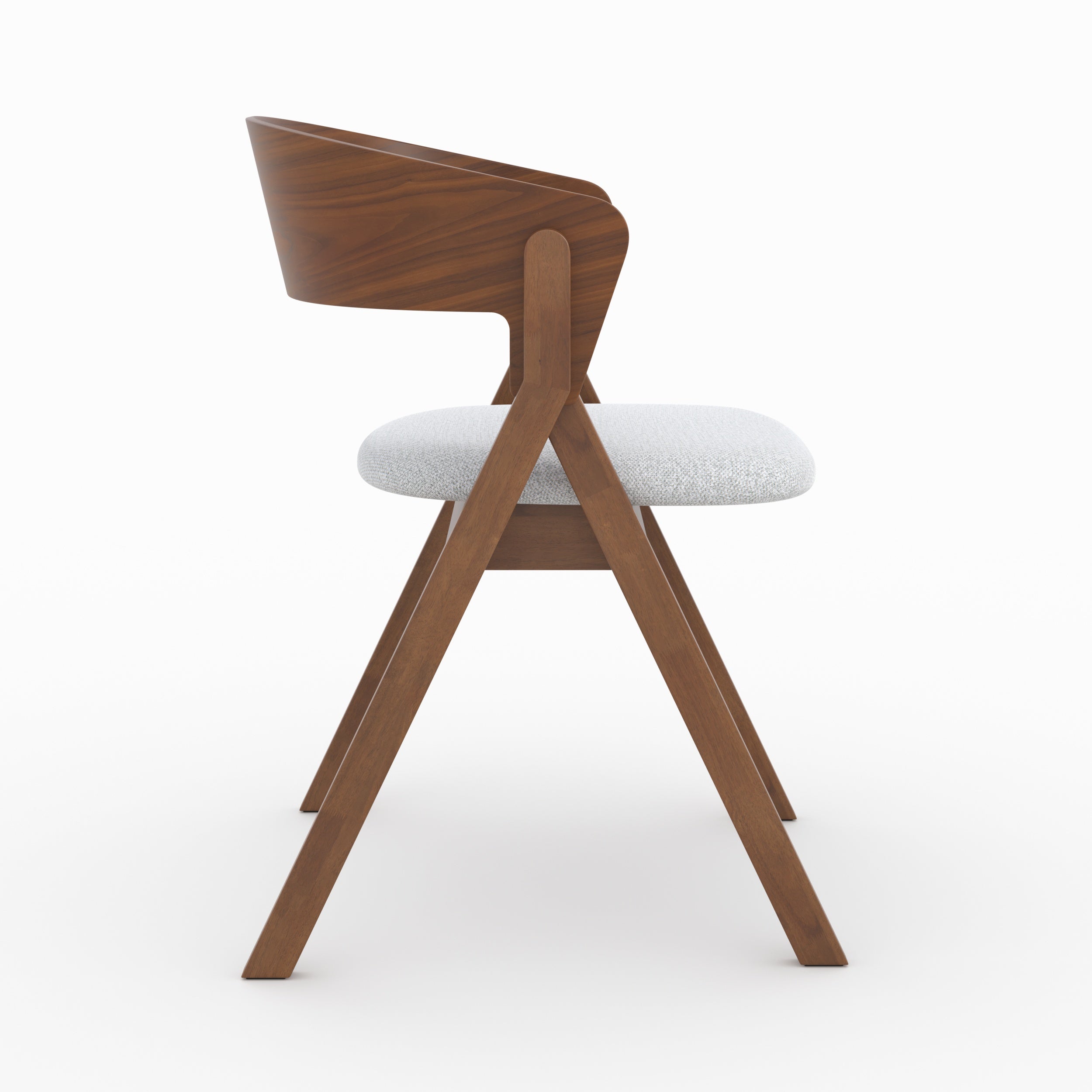 Stuhl aus Gummi-Holz und hellgrauem Stoff