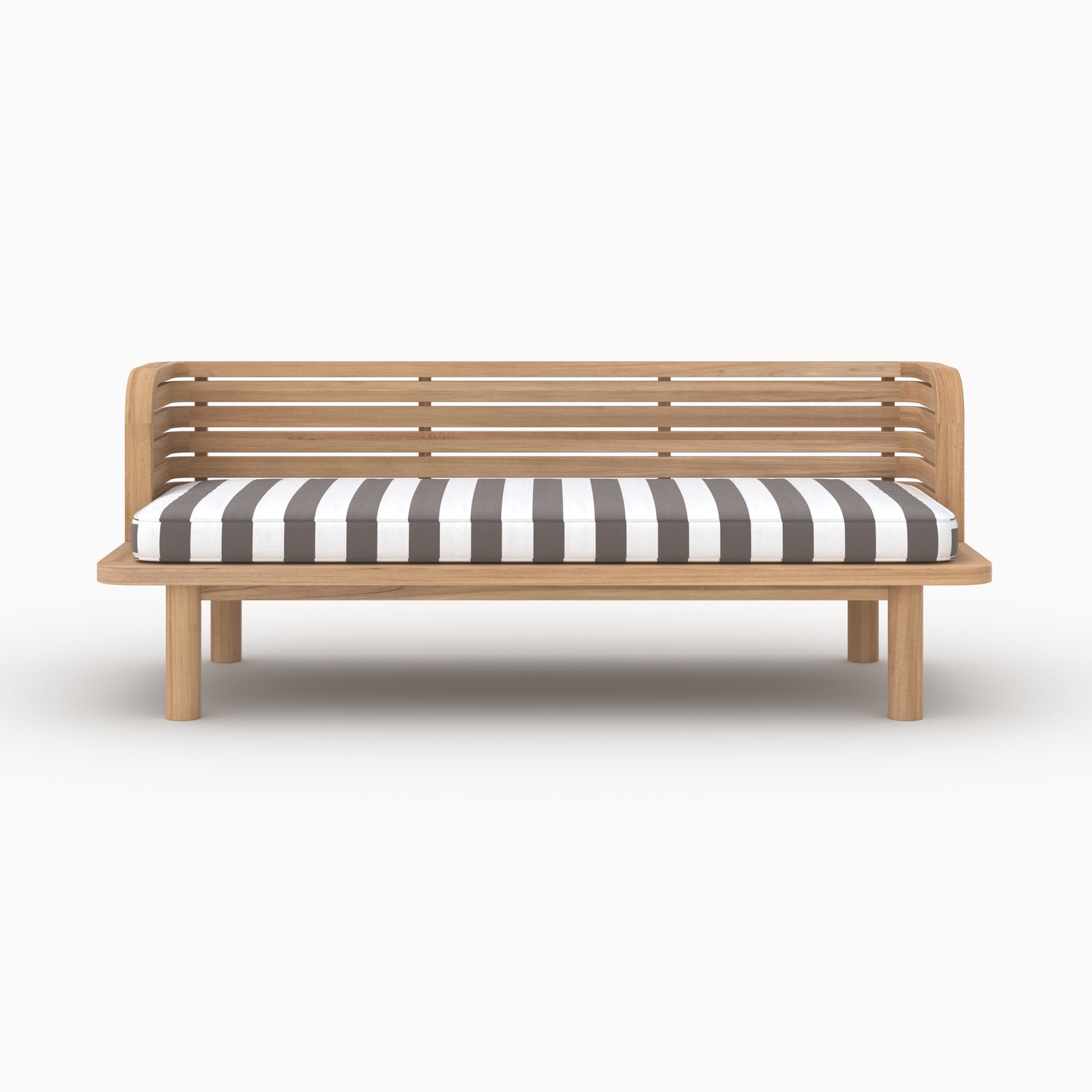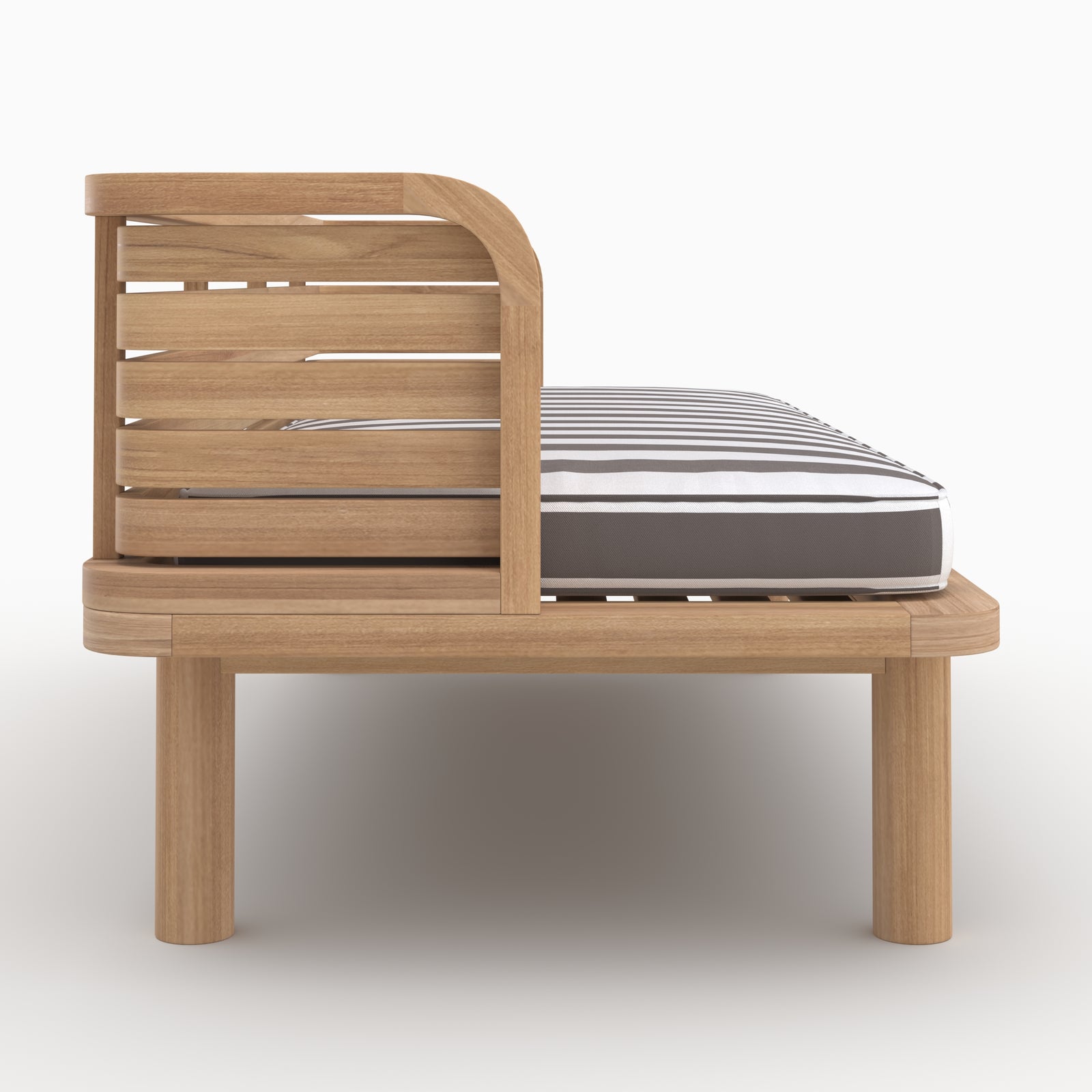 Die aktuellen Streifen setzen den Ton für dieses Teak-Gartenmöbel.