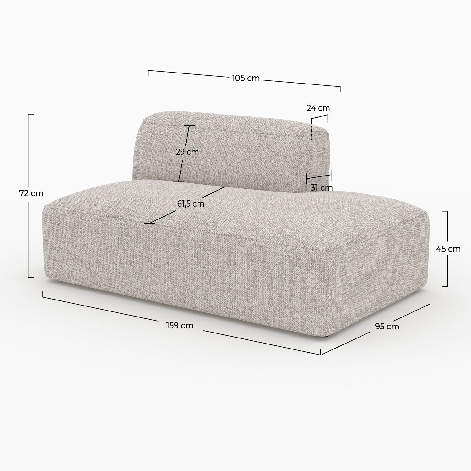 Das Hestia-Tagestück mit Rückenlehne links ist ein unverzichtbares Element, um ein modulares Sofa nach Ihrem Bild zu gestalten. Dank seiner großzügigen Größe lädt es zur Entspannung ein und bringt gleichzeitig Tiefe und Persönlichkeit in Ihr Wohnzimmer.