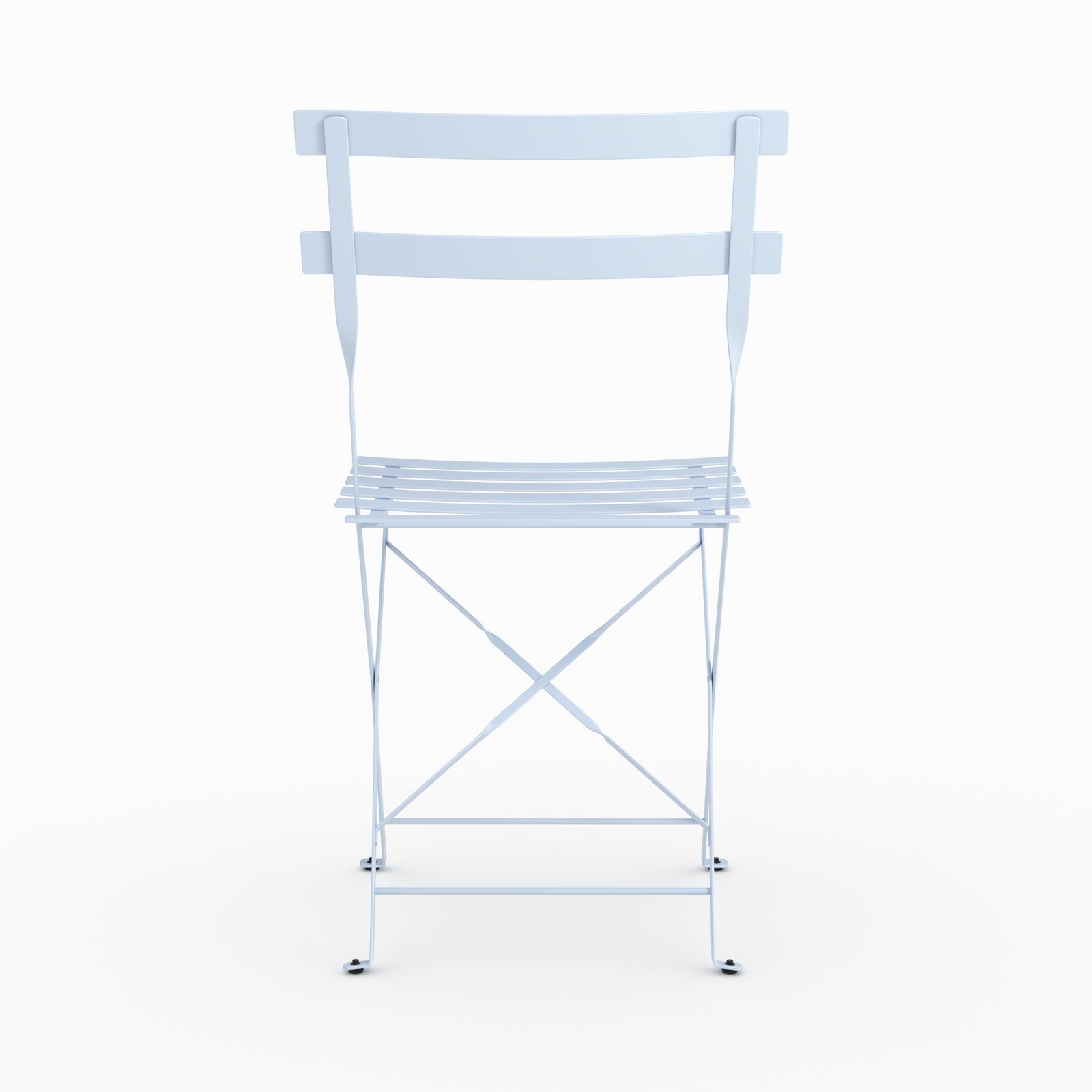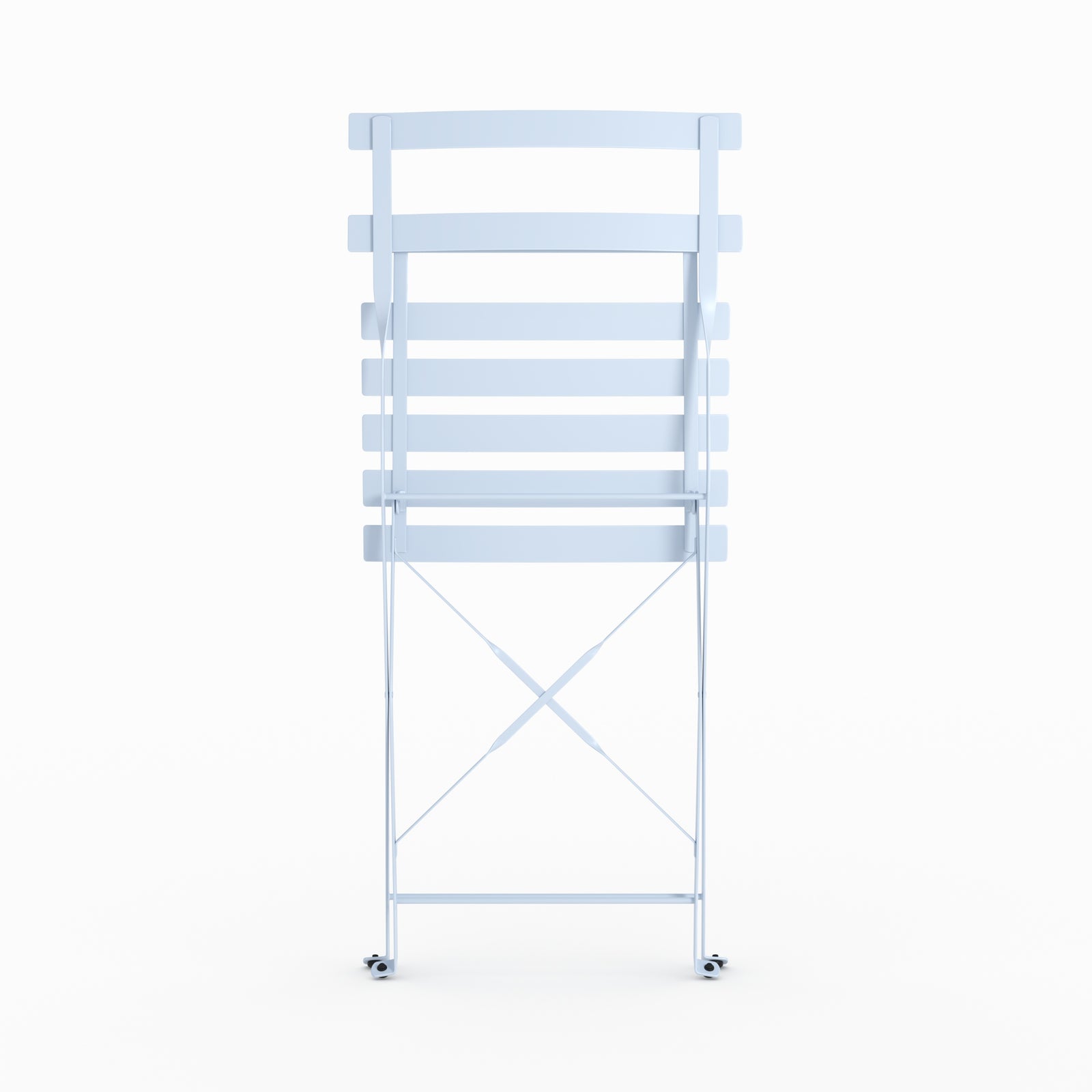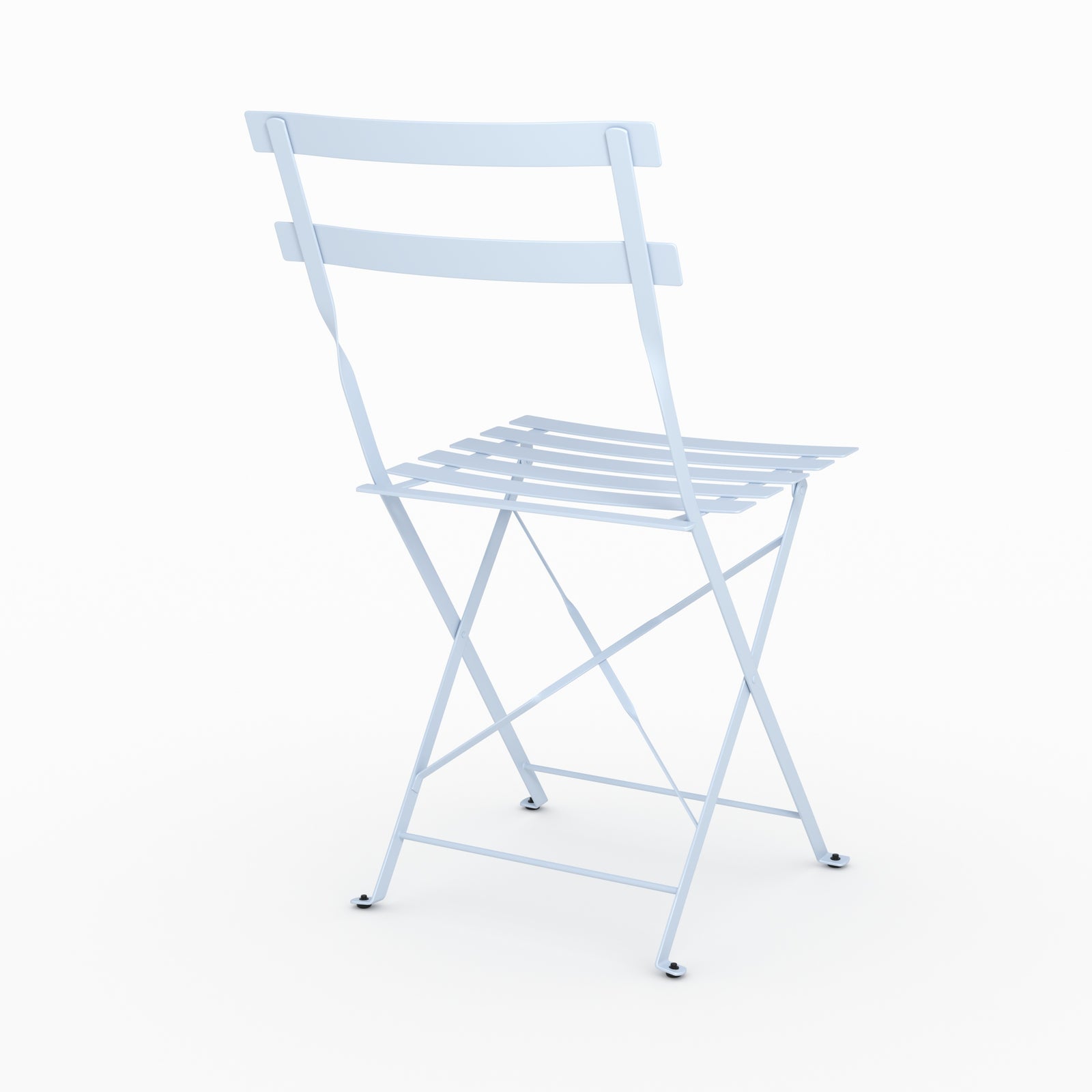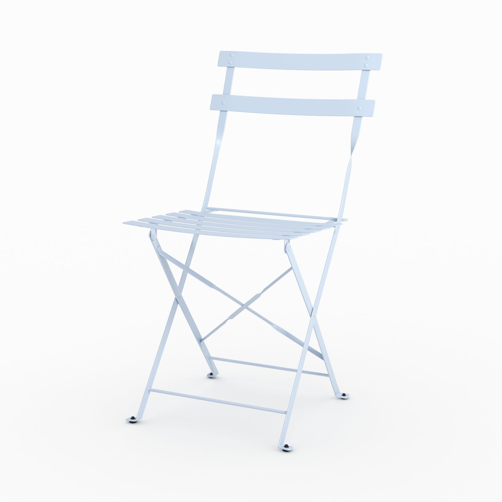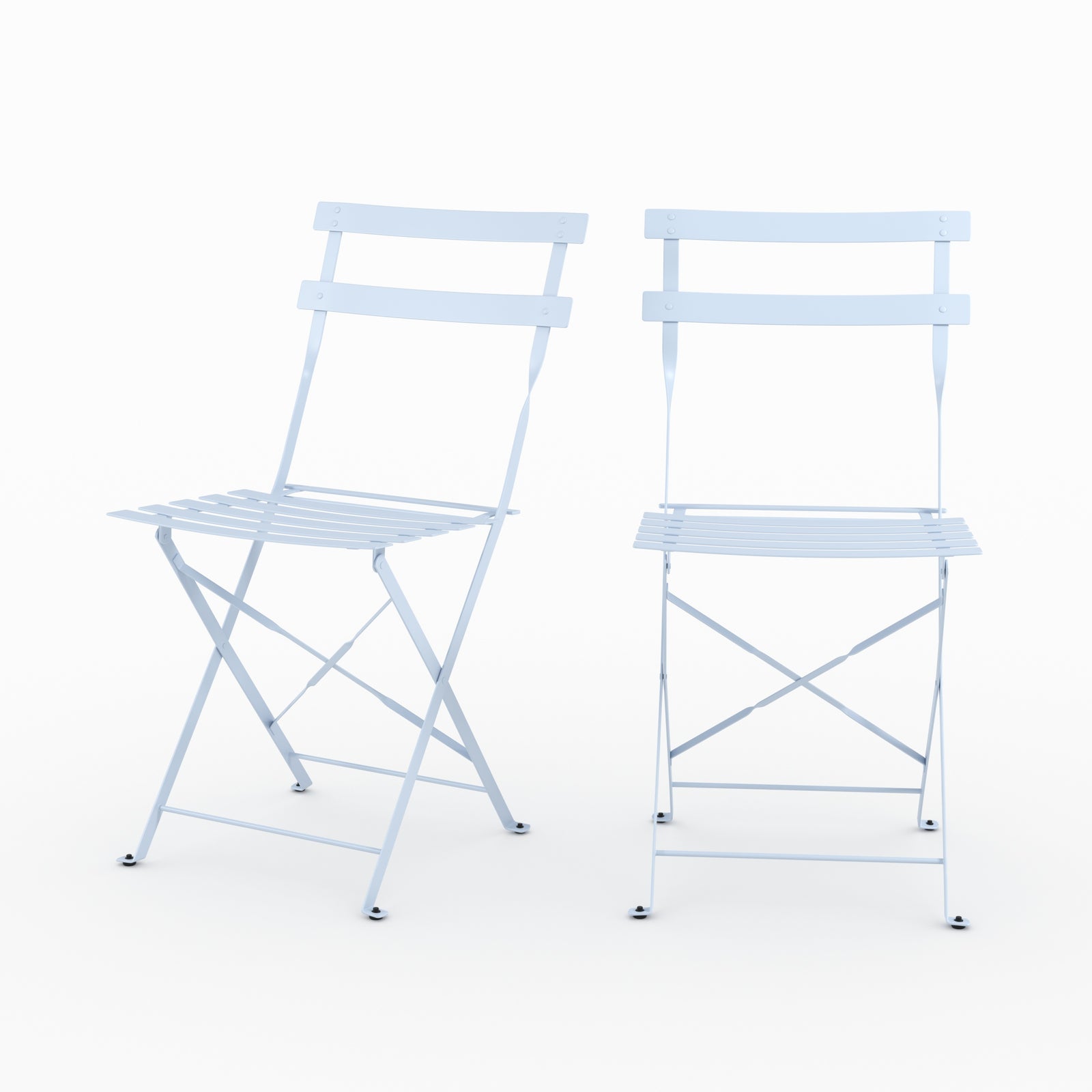 Set aus 2 blauen, pastellfarbenen, klappbaren Metallgartenstühlen