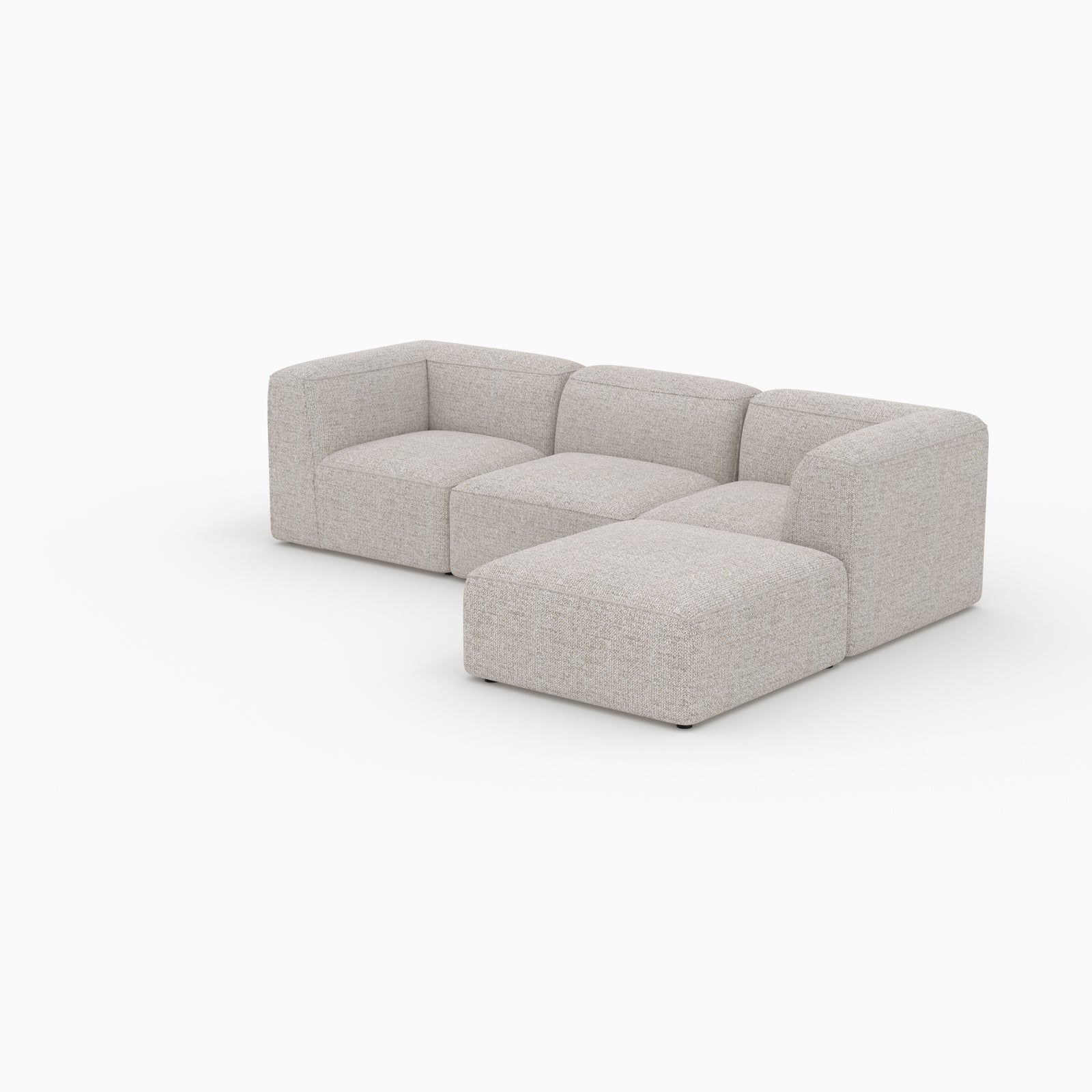Diseñado para evolucionar con tus deseos, el Mina se viste de un tejido beige texturizado, suave al tacto, resistente y anti-pilling. Su asiento profundo, sus curvas envolventes y su puf generoso invitan a verdaderos momentos de relajación, solo o en compañía.