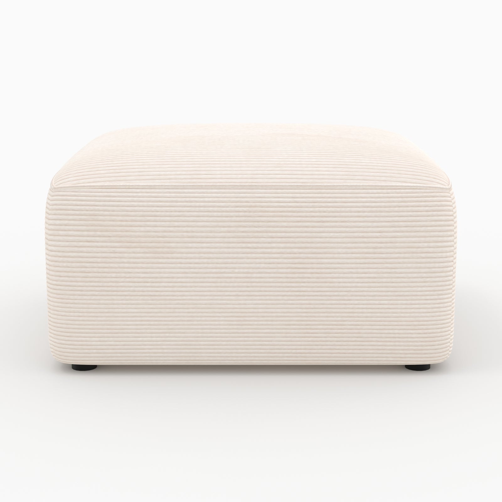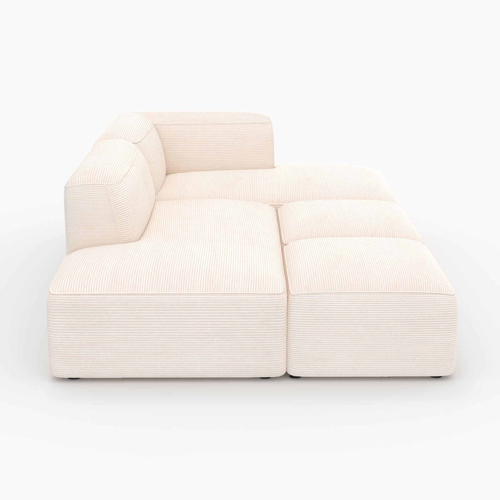Vestido con un terciopelo de canalé blanco tan suave como resistente, este sofá de 4 plazas con sus dos pufs invita a la relajación. Su asiento generoso y profundo se adapta al cuerpo, mientras que el sistema de sujeción invisible garantiza una perfecta estabilidad.