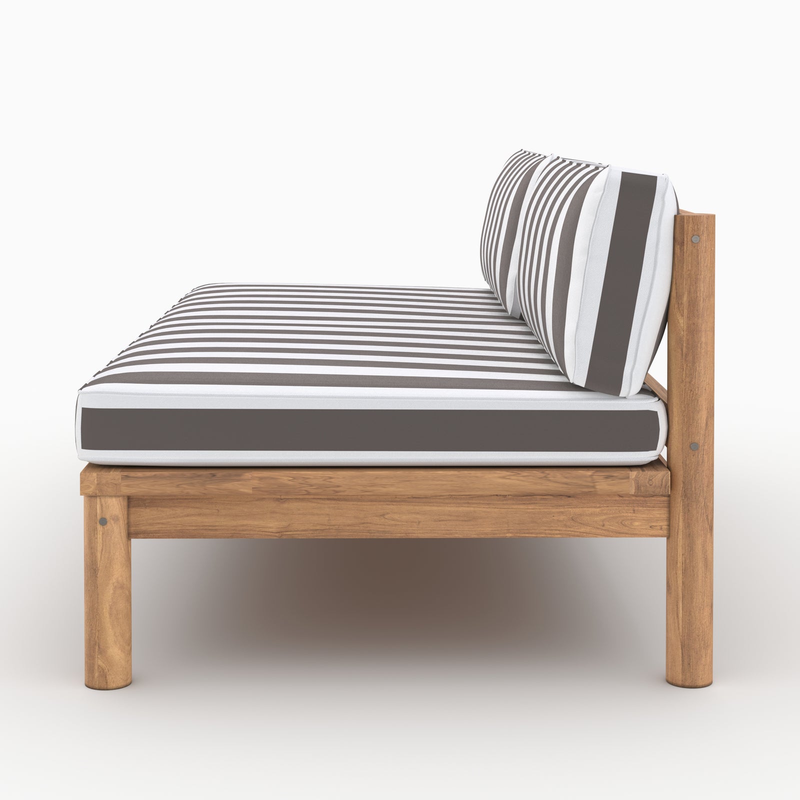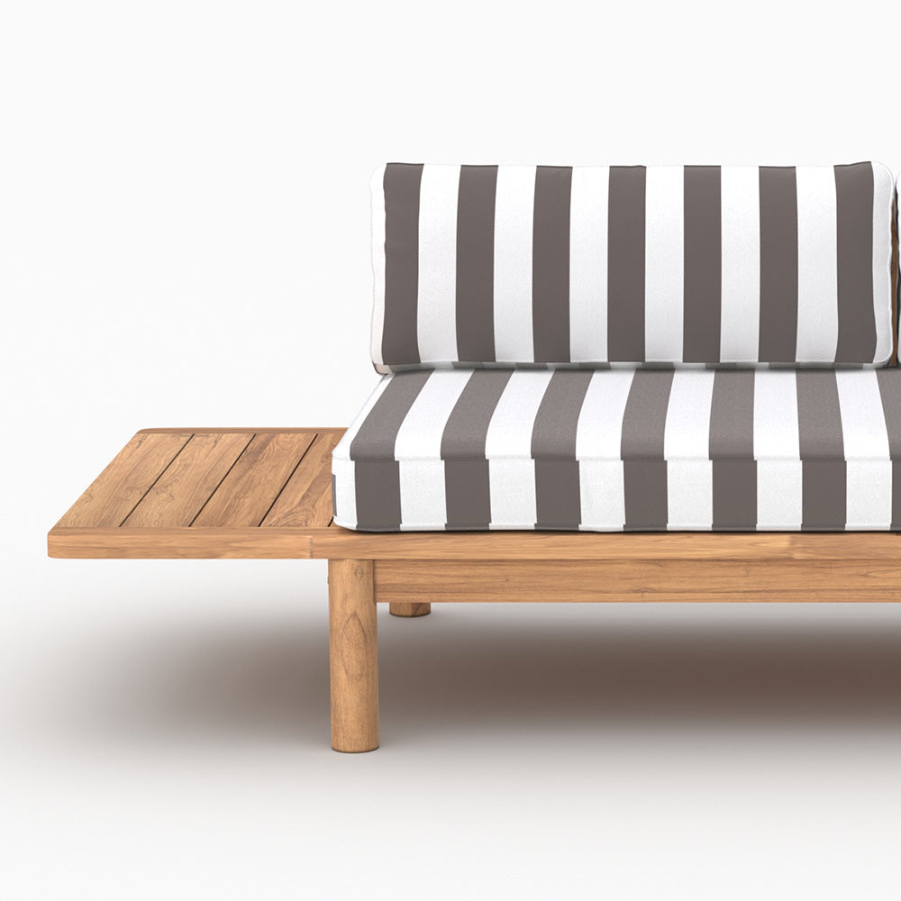 Divano da giardino in teak massello con cuscini a righe grigi 2 posti