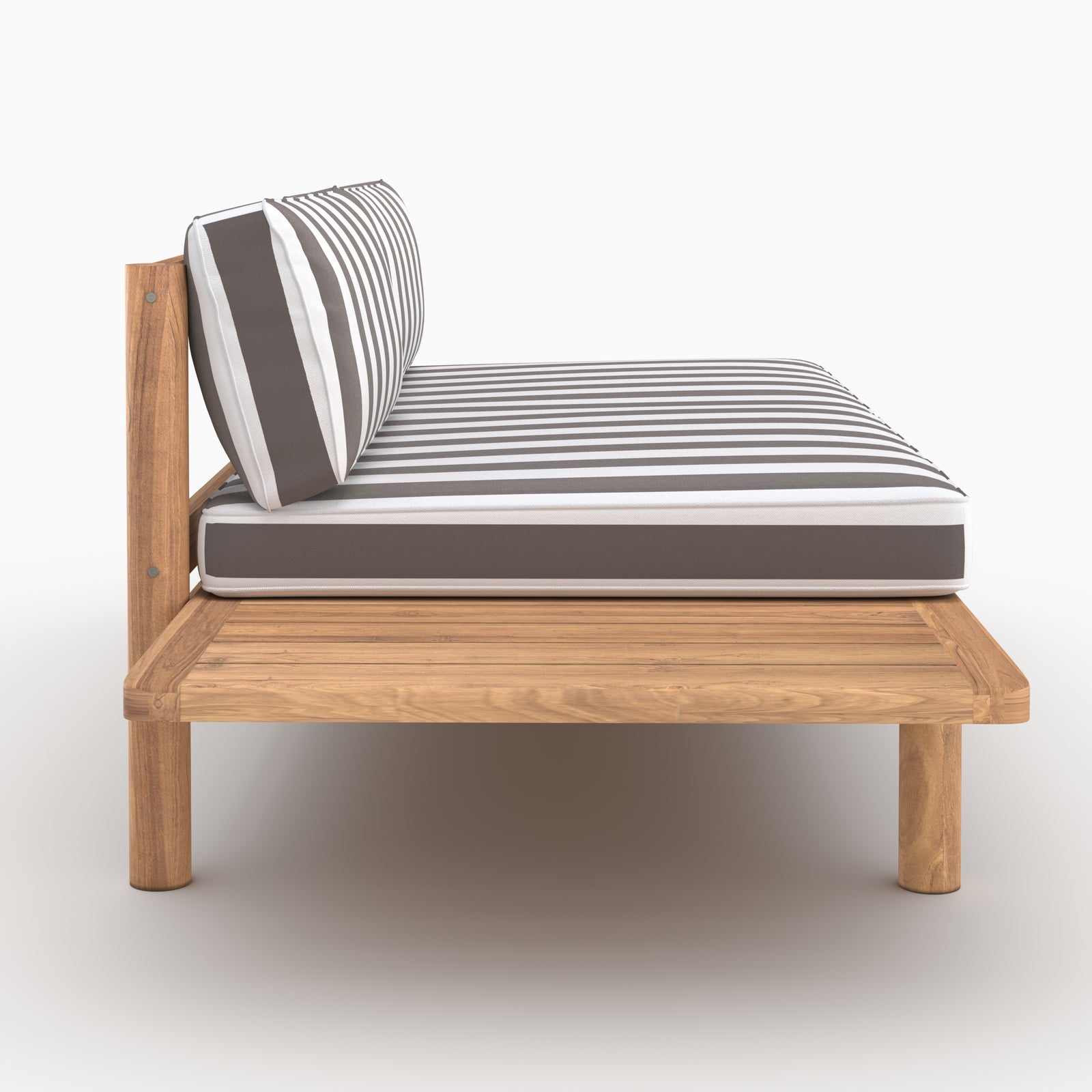 Strisce eleganti, un grigio profondo e tutto il fascino del teak naturale.