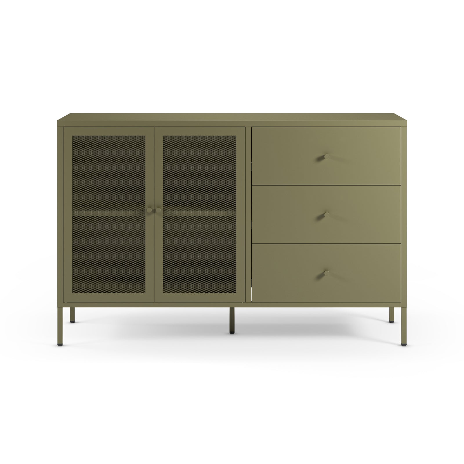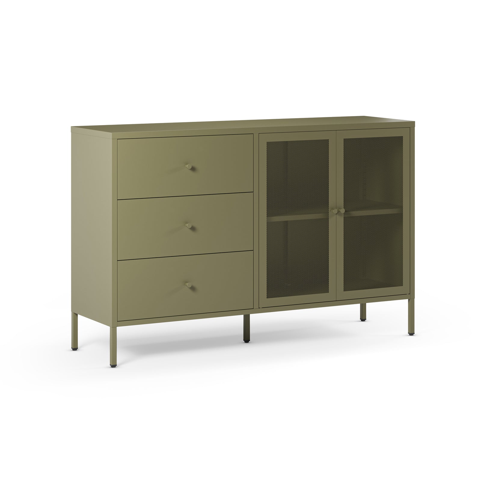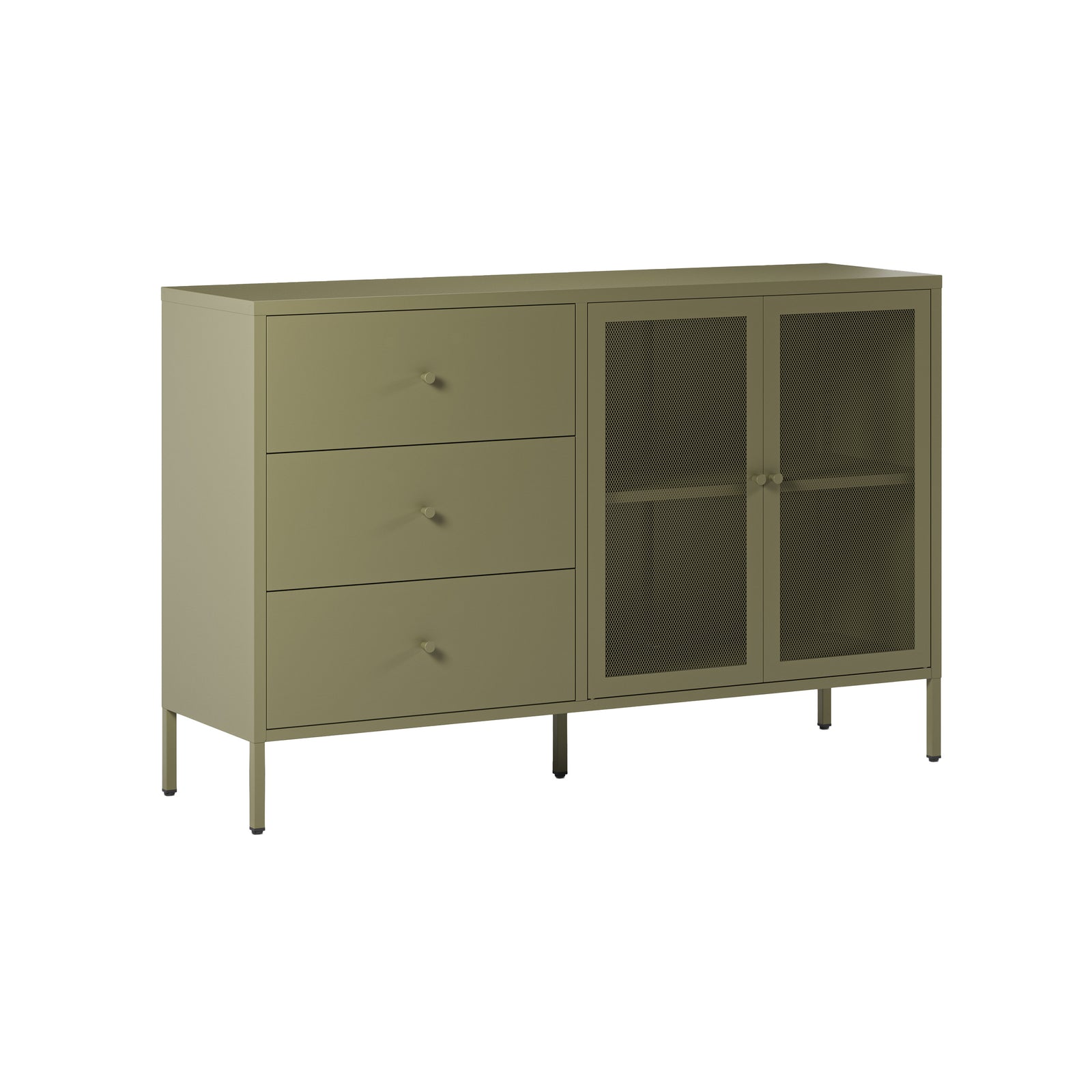 La sua struttura 100% metallo, tinta di un verde salvia rasserenante, unisce eleganza e solidità. Le perforazioni grafiche lasciano intuire il contenuto, con leggerezza.