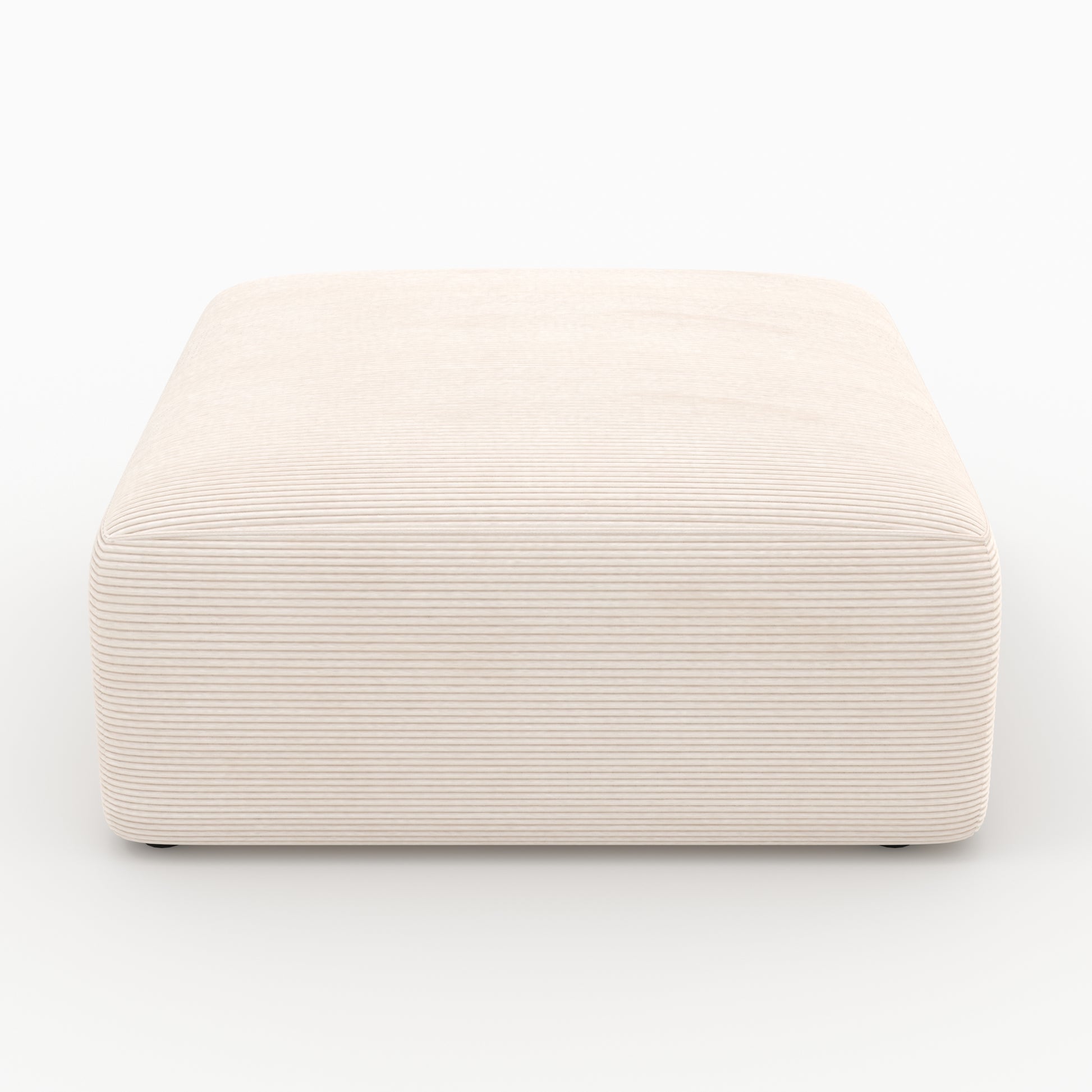 Poggiapiedi, seduta supplementare o elemento centrale, offre un comfort generoso rivestito in un velluto cotelè bianco sporco, morbido, resistente e anti-pilling.