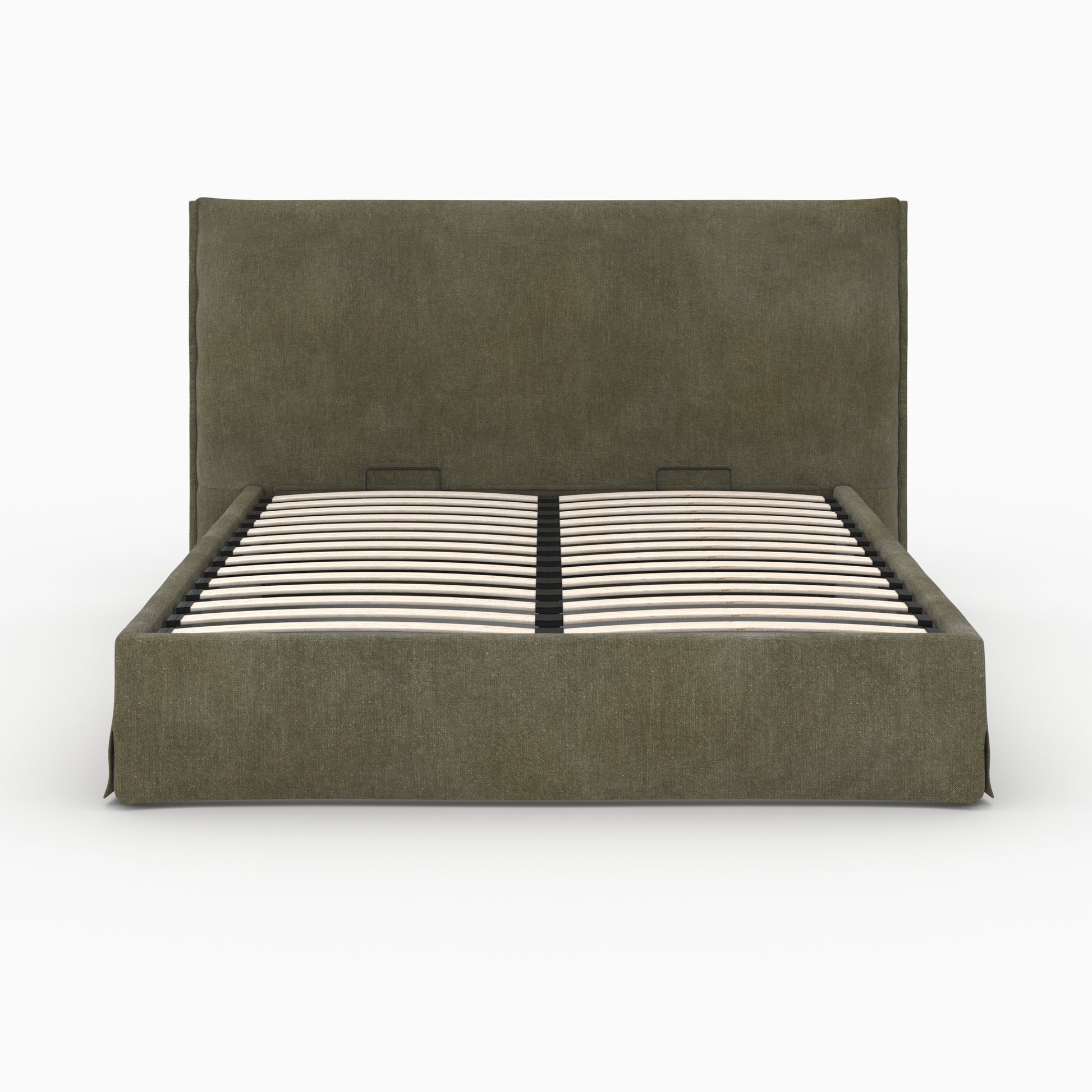 Lit coffre 160x200 cm en tissu vert olive déhoussable