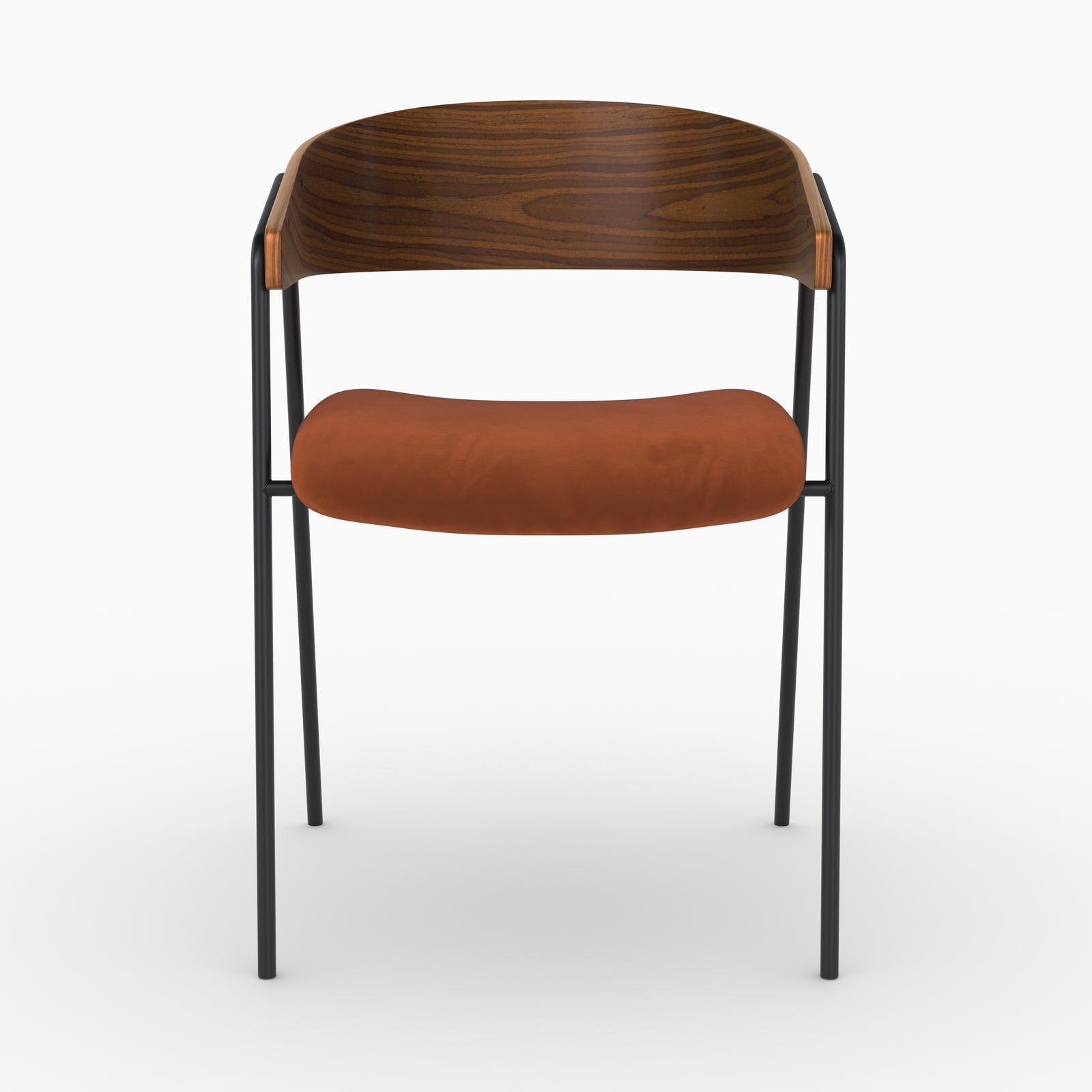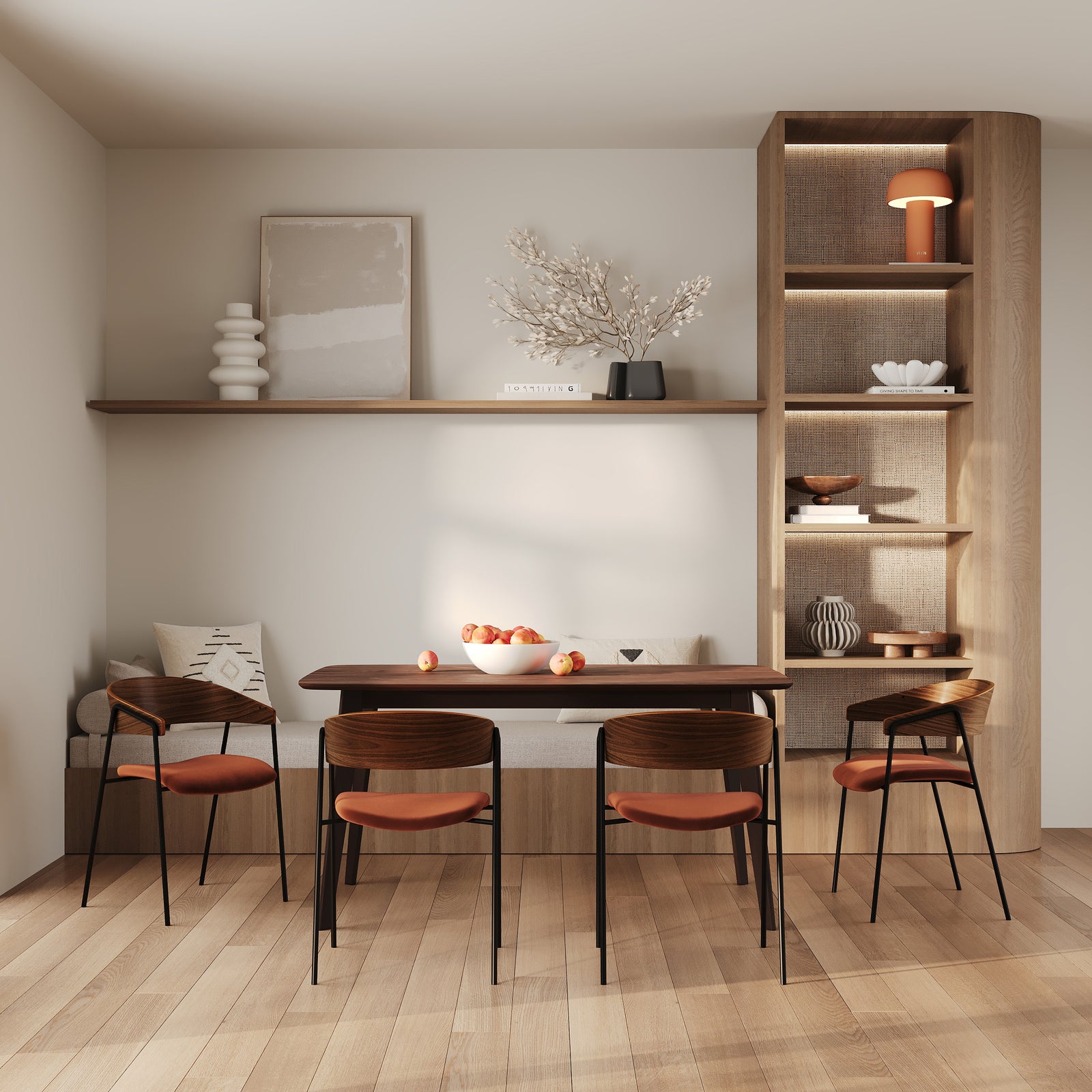Habillées d’un velours terracotta profond, ces chaises enveloppent l’espace de leur douceur et de leur confort.