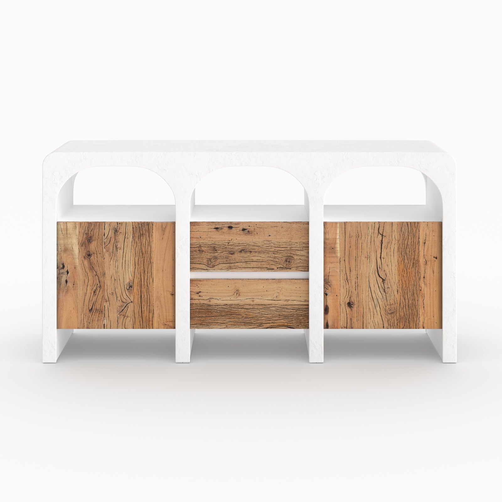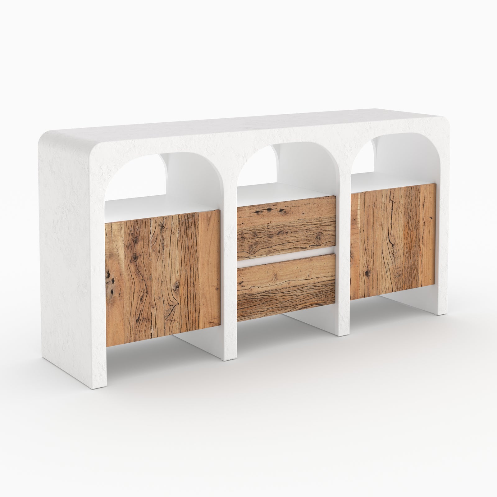 Buffet en béton blanc cassé et bois