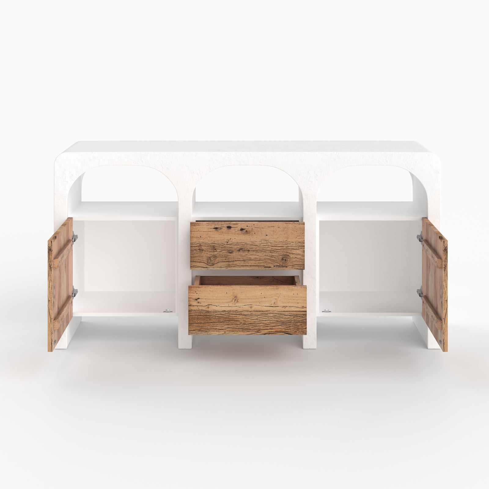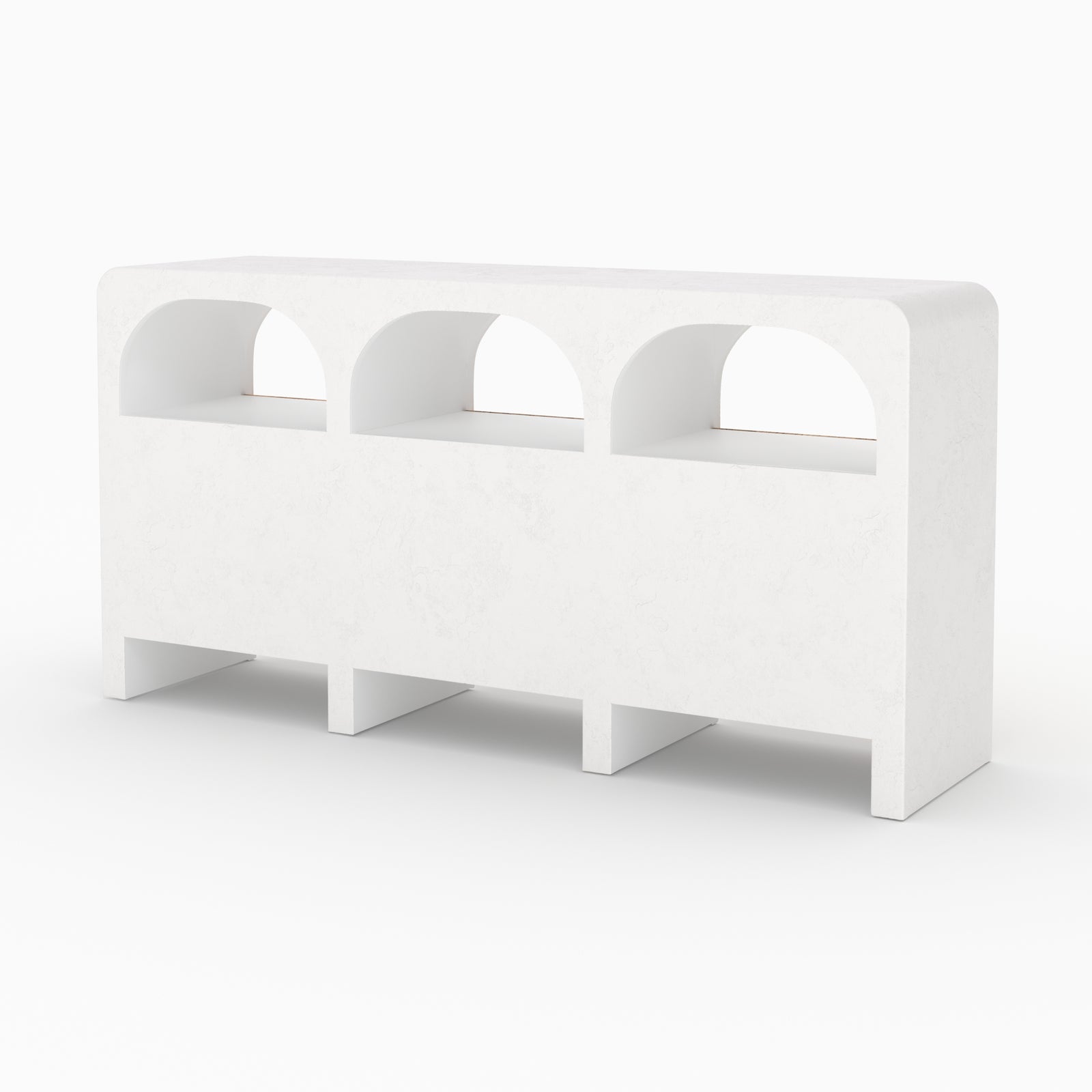 Confectionné dans un atelier familial du nord de l’Inde, ce buffet en béton blanc cassé conjugue savoir-faire authentique et finitions soignées.
