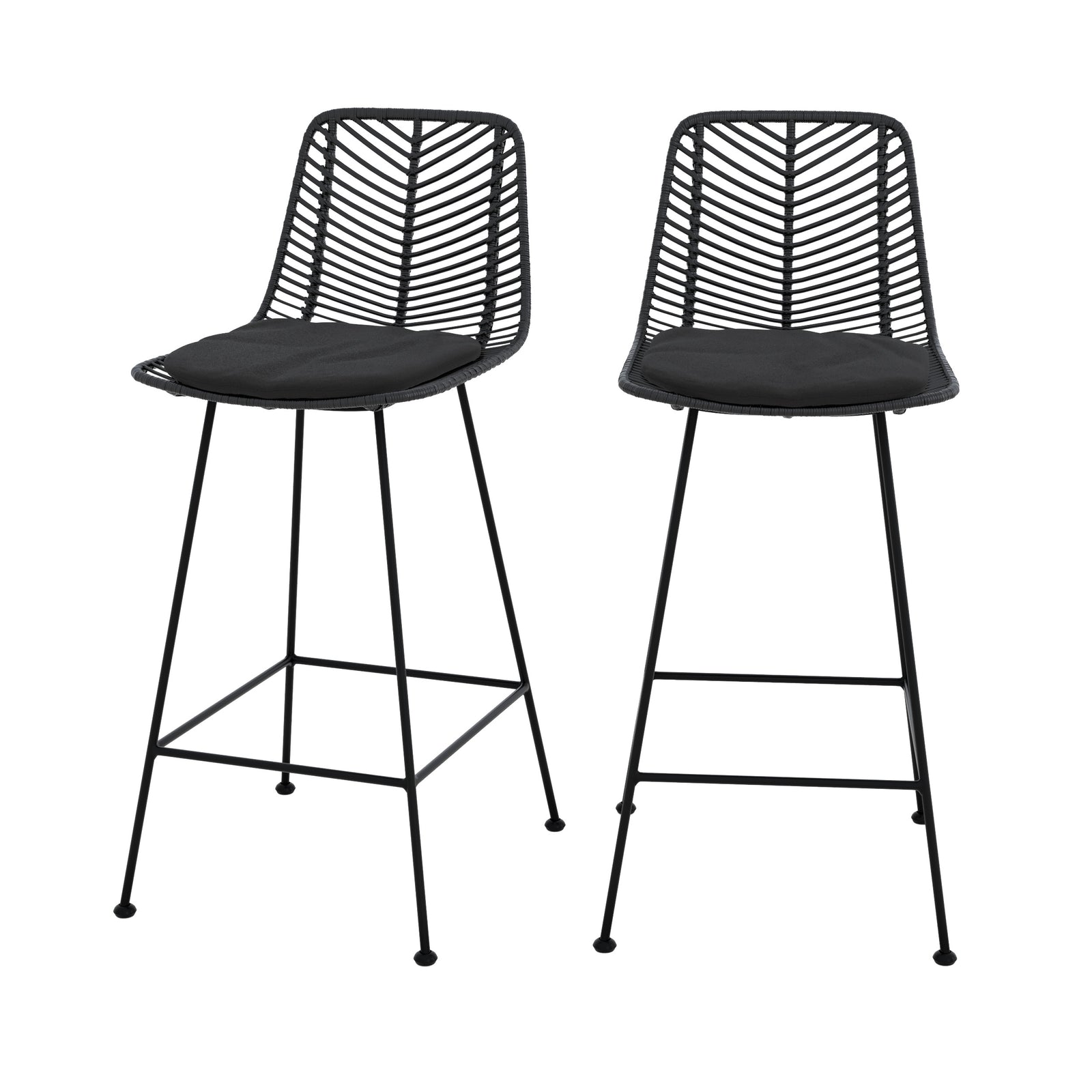 Lot de 2 chaises pour îlot central 66 cm en rotin noir