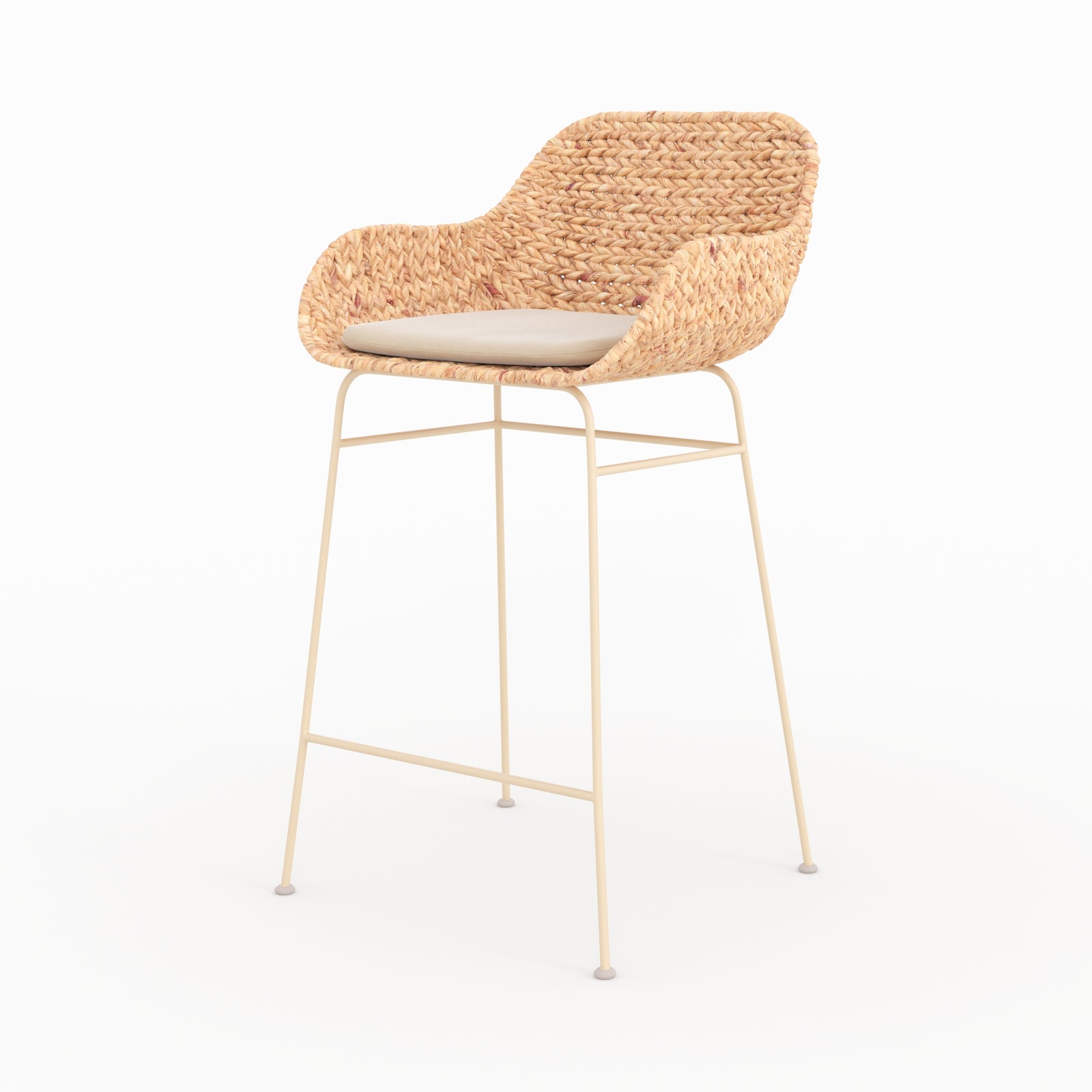 Dépoussiérez régulièrement le tabouret avec une brosse souple ou un chiffon microfibre sec pour éviter que la poussière ne s’incruste entre les fibres de jacinthe d’eau. En cas de tache, passez un linge légèrement humidifié avec de l’eau tiède et une goutte de savon doux, sans détremper la matière, puis essuyez aussitôt et laissez sécher naturellement à l’air, à l’abri du soleil direct.