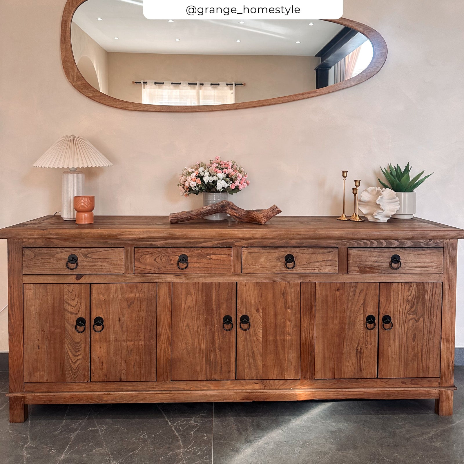 Vous aimez les objets de décoration rustiques et pratiques ? Alors, vous allez adorer notre buffet rectangulaire en bois d’orme Mastic très chic avec son ambiance Maison Bohème.