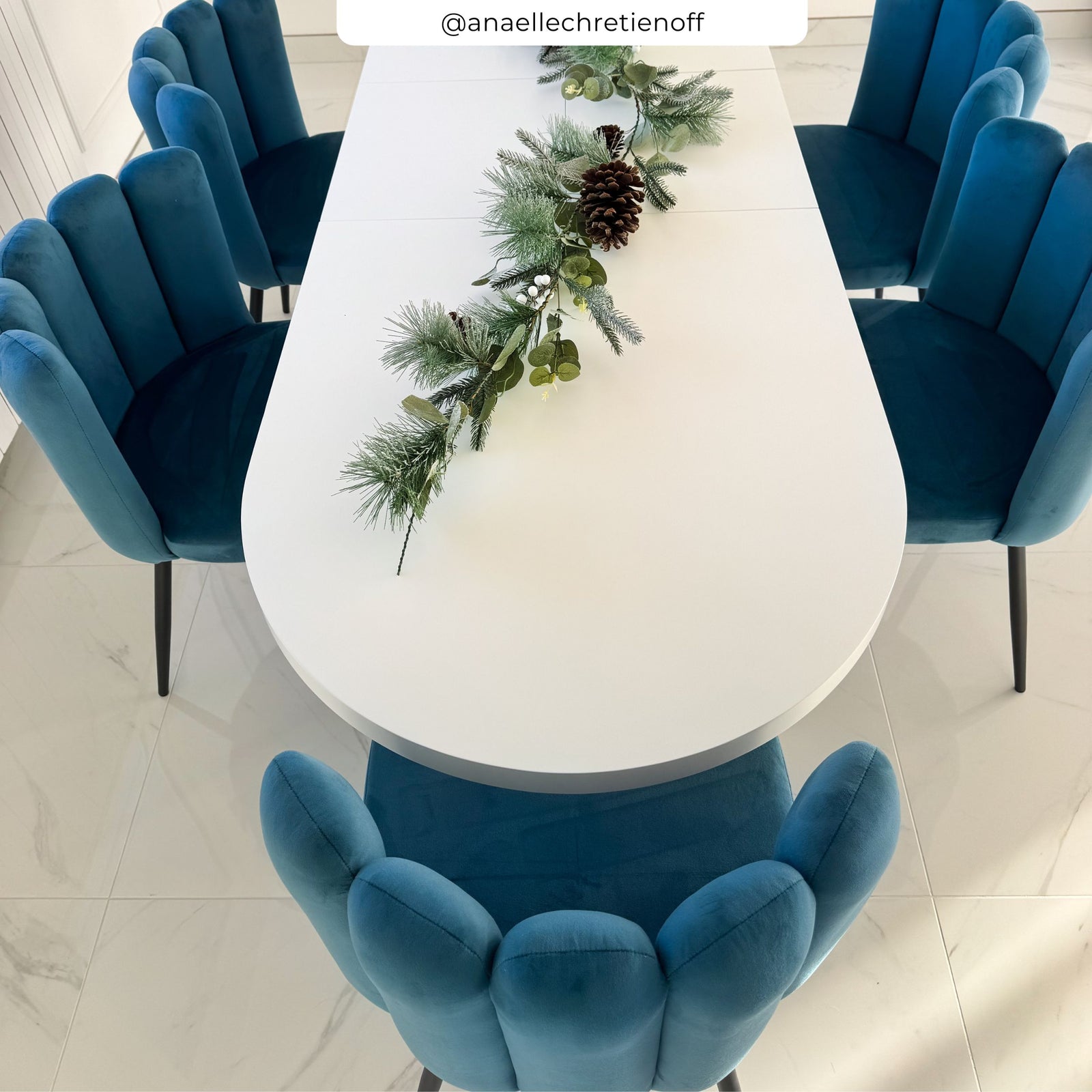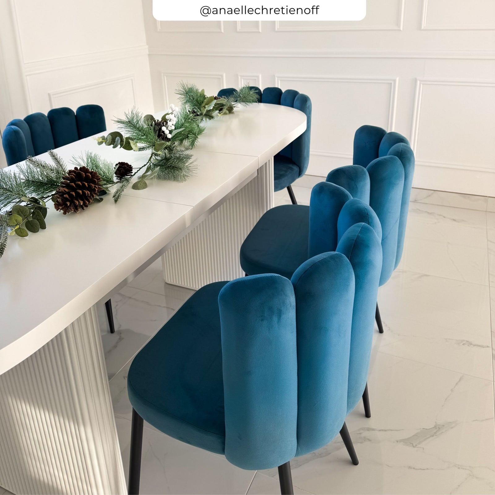 Le style très sculptural des chaises Rosy en velours bleu vous séduit : Rendez-vous déco vous propose une collection de mobilier d’esprit Art Déco aux allures très ornementales.