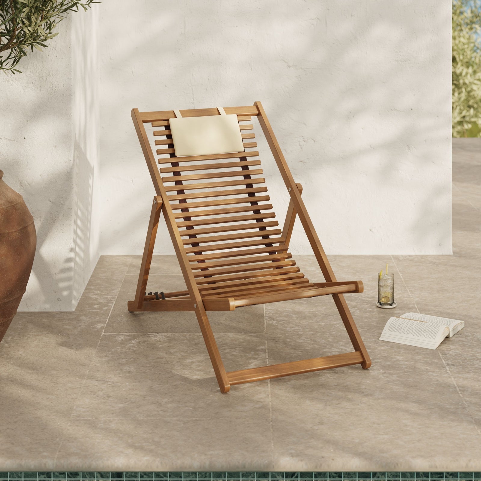 La chilienne Nacpan associe la chaleur du bois d’acacia à un tissu écru lumineux et intemporel. Son dossier réglable sur 4 niveaux s’adapte à vos envies, du verre en fin de journée à la sieste de l’après-midi. Pliable et dotée d’un coussin déhoussable, elle allie confort et praticité.