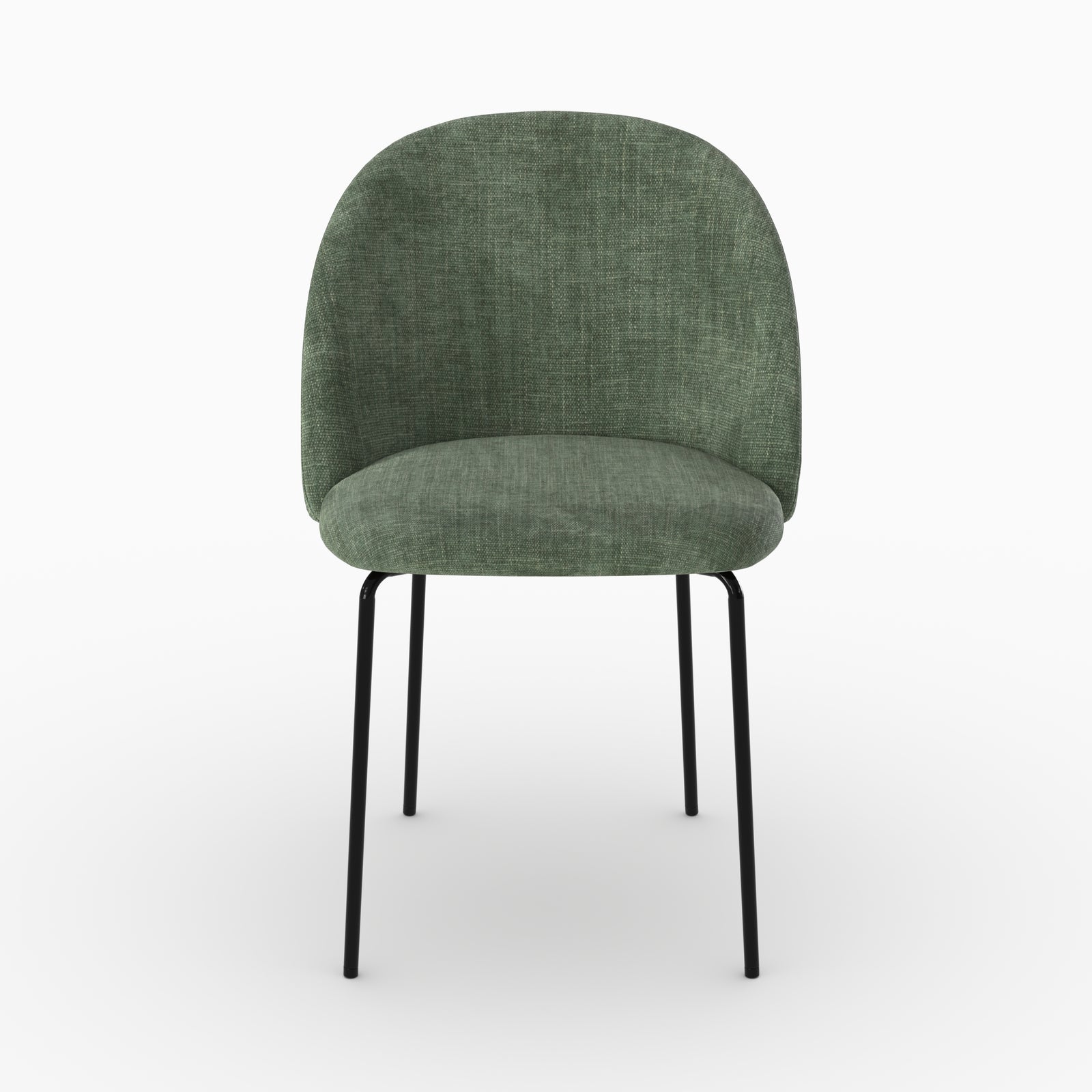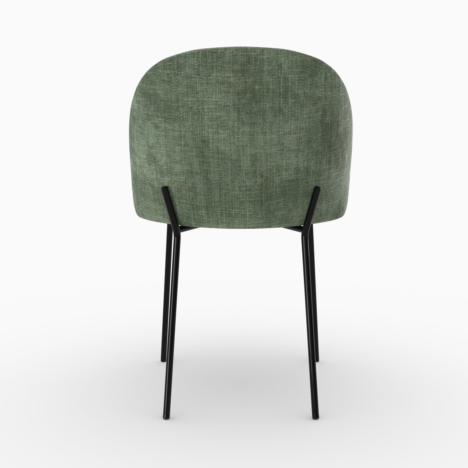 Le vert sapin apporte profondeur et caractère à cette chaise au tissu texturé subtilement travaillé. L’assise moelleuse offre un vrai confort, soutenue par une structure solide et durable.