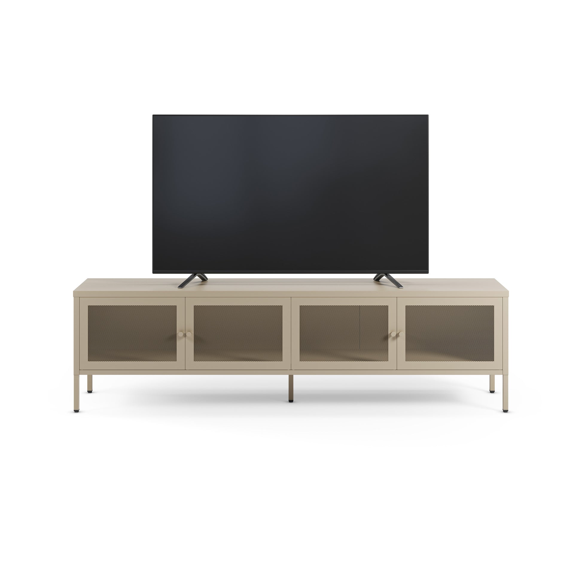 Avec ses lignes franches et sa teinte sable lumineuse, Latem beige revisite le meuble TV industriel avec douceur.