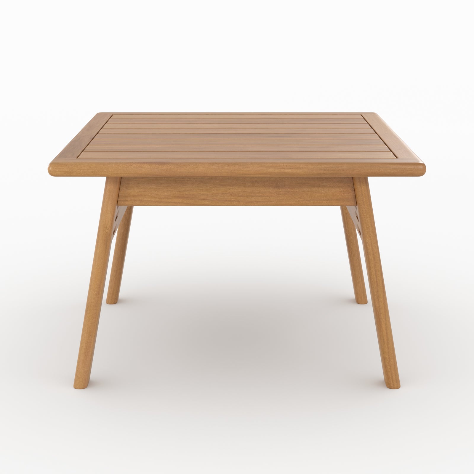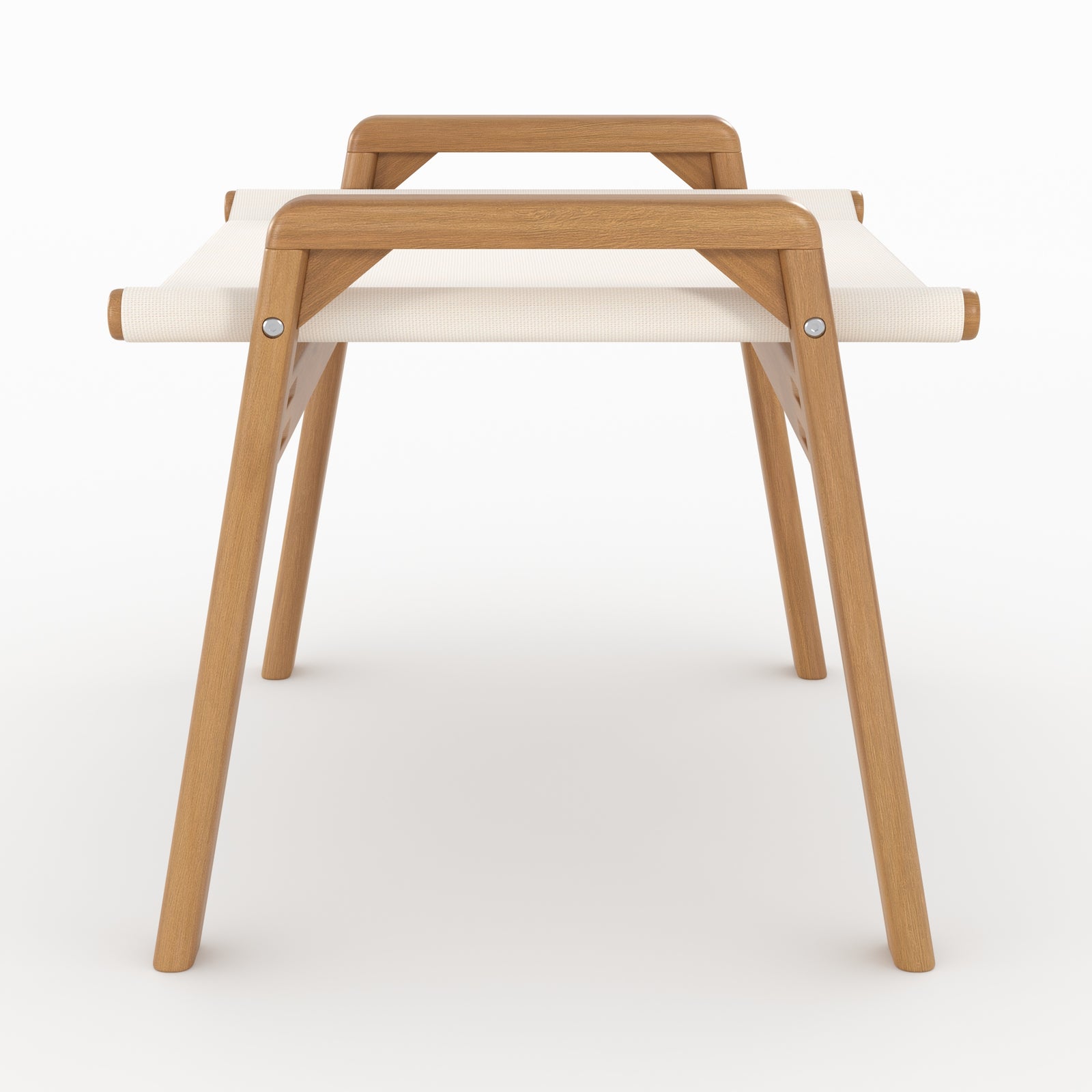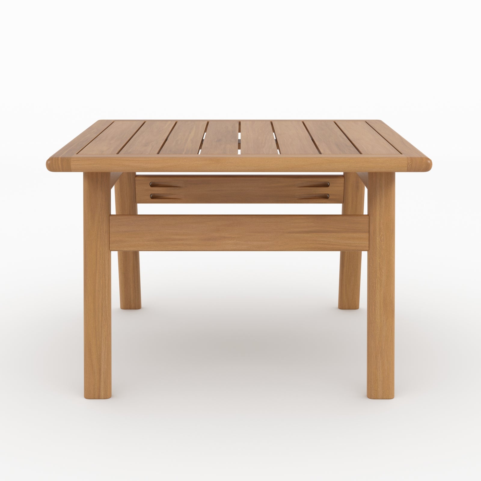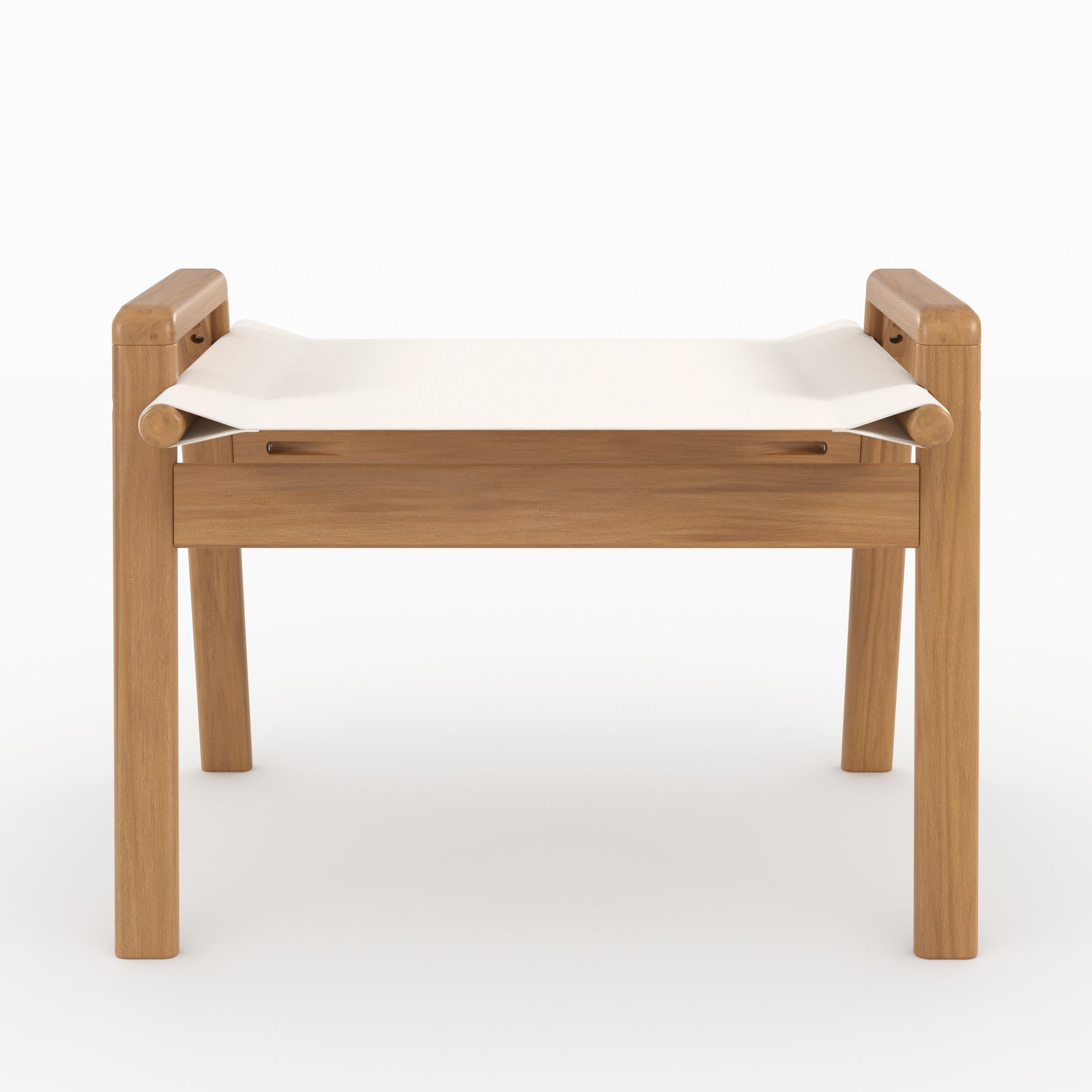 En bois d’acacia huilé, le salon Palawan séduit par la noblesse de sa matière et la chaleur de ses lignes. Ses deux fauteuils rembourrés aux accoudoirs enveloppants promettent un confort absolu, accompagnés d’un repose-pied et d’une table basse carrée pour des instants tout en douceur.