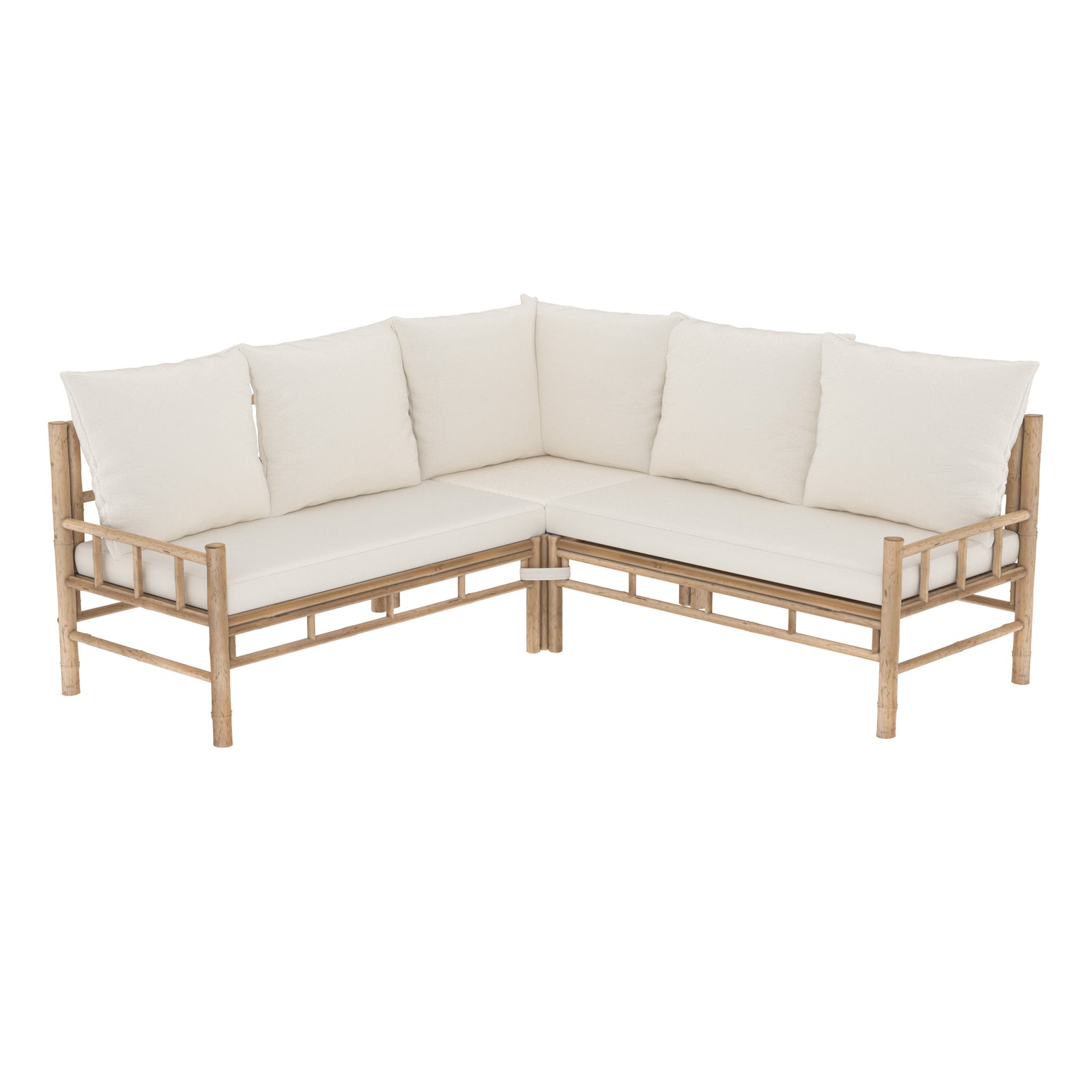 Salon de jardin en bambou avec un canapé d'angle et une table basse
