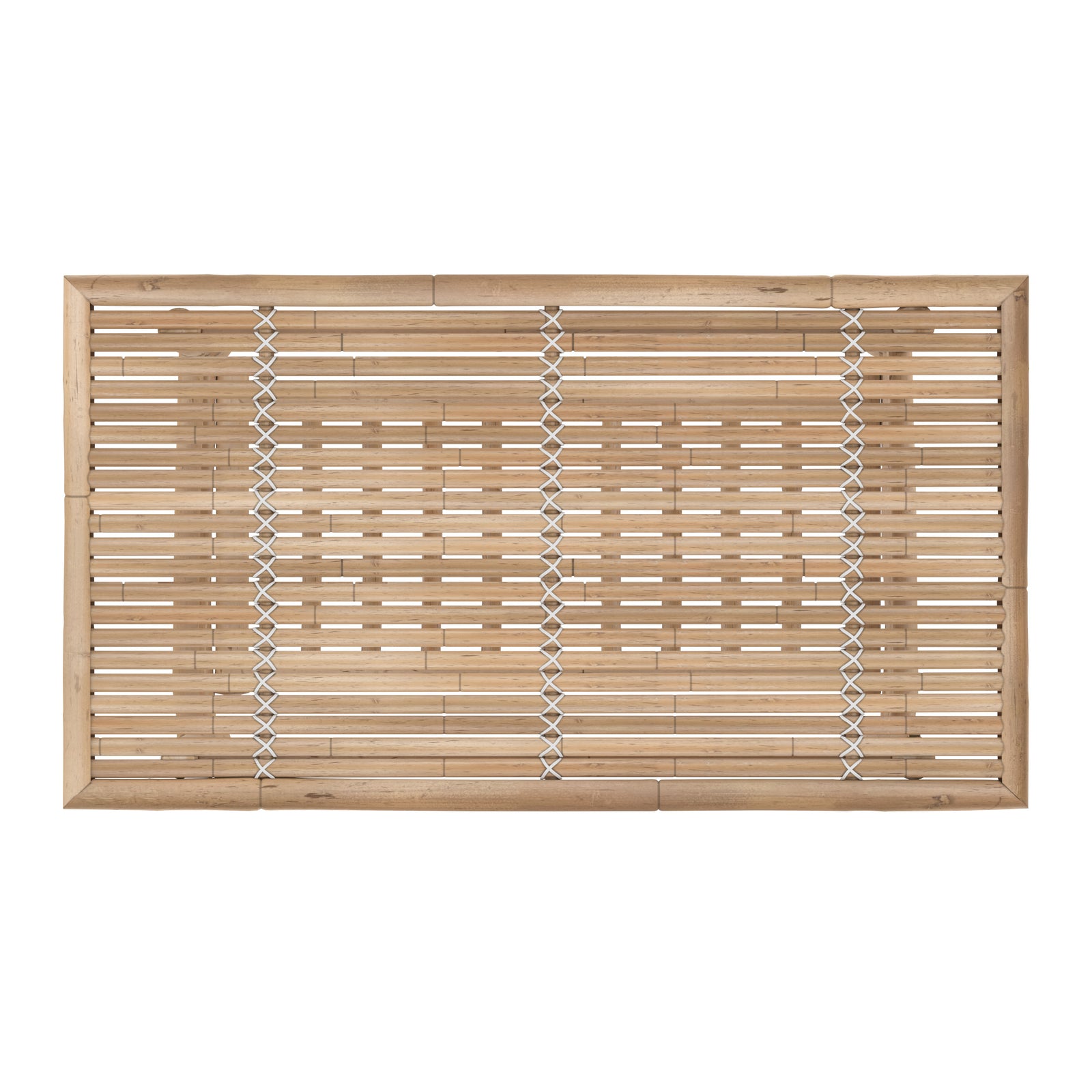 Chaque meuble bénéficie d’un traitement renforcé contre l’humidité, les UV et l’usure pour une meilleure durabilité. Pour préserver son éclat, un entretien annuel est recommandé : ponçage, dépoussiérage et application d’huile terrasse dès qu’il commence à grisailler.