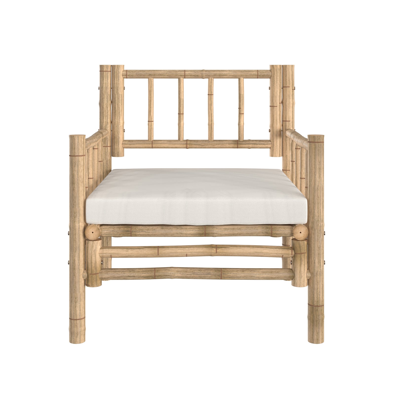 Salon de jardin en bambou avec canapé, fauteuil et table basse
