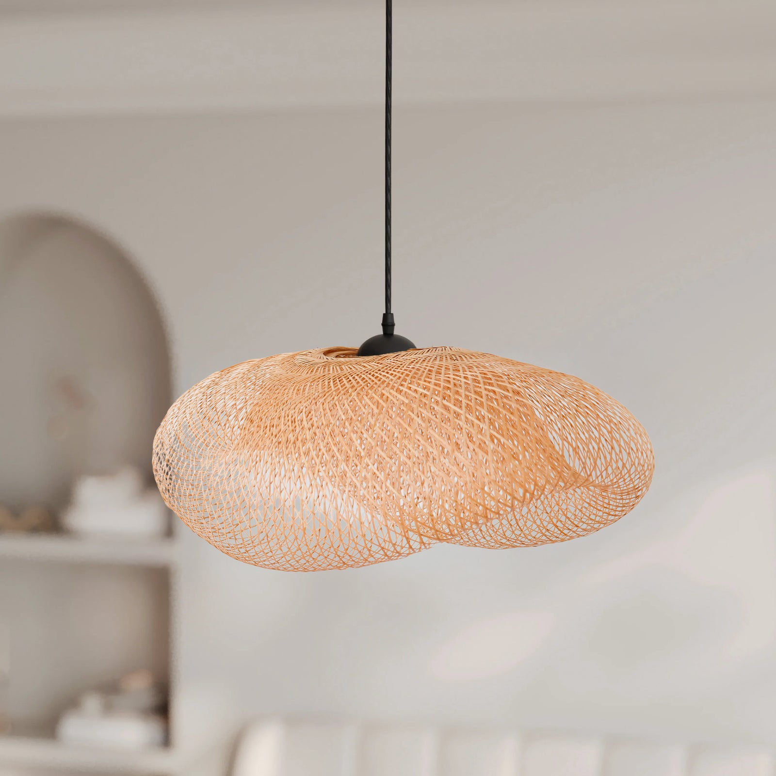Découvrez notre suspension Anya en bambou naturel de 60 cm de diamètre, conçue spécialement pour votre salon et apporter une touche de style bohème à votre espace de vie.