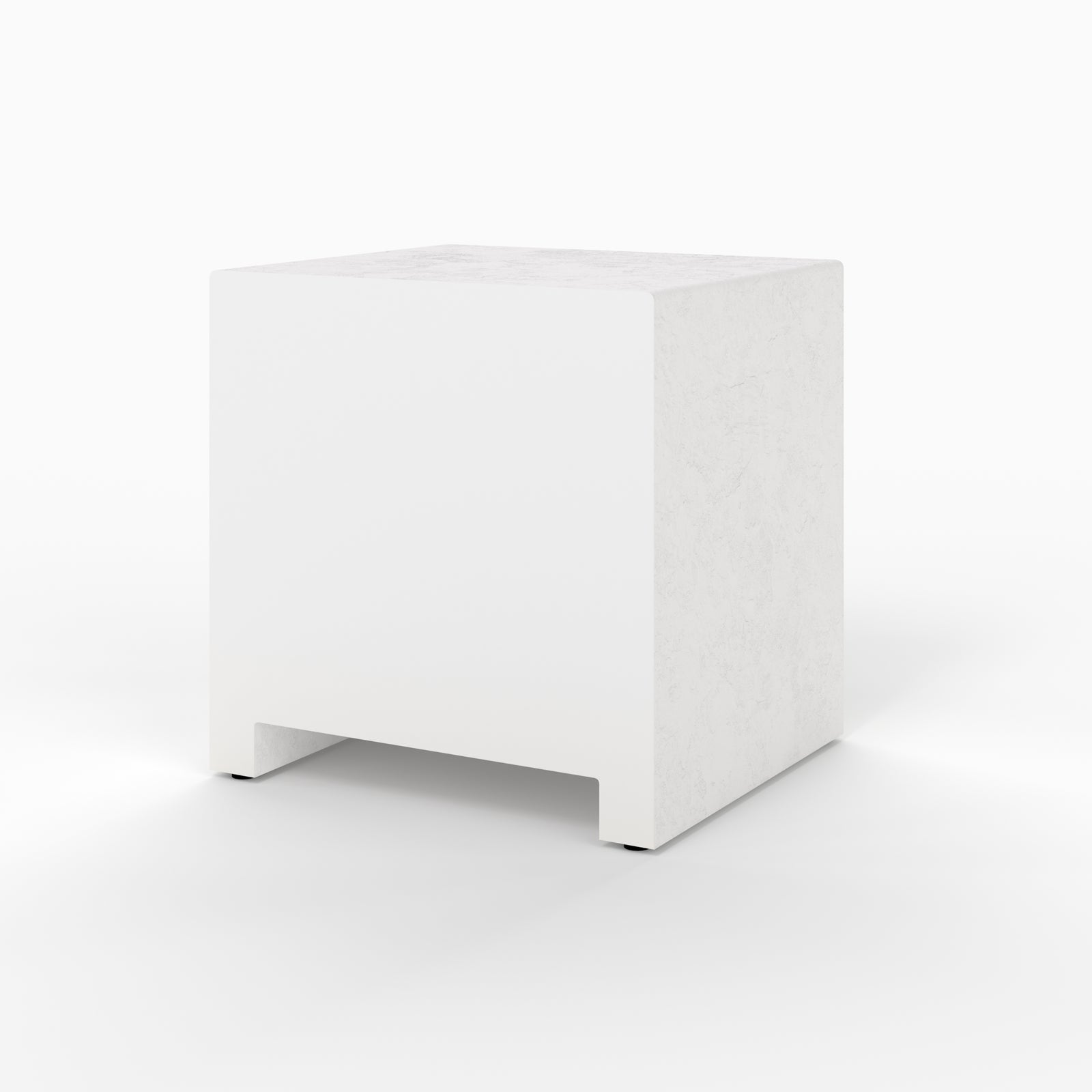 Table de chevet en plâtre blanc cassé et bois d'acacia
