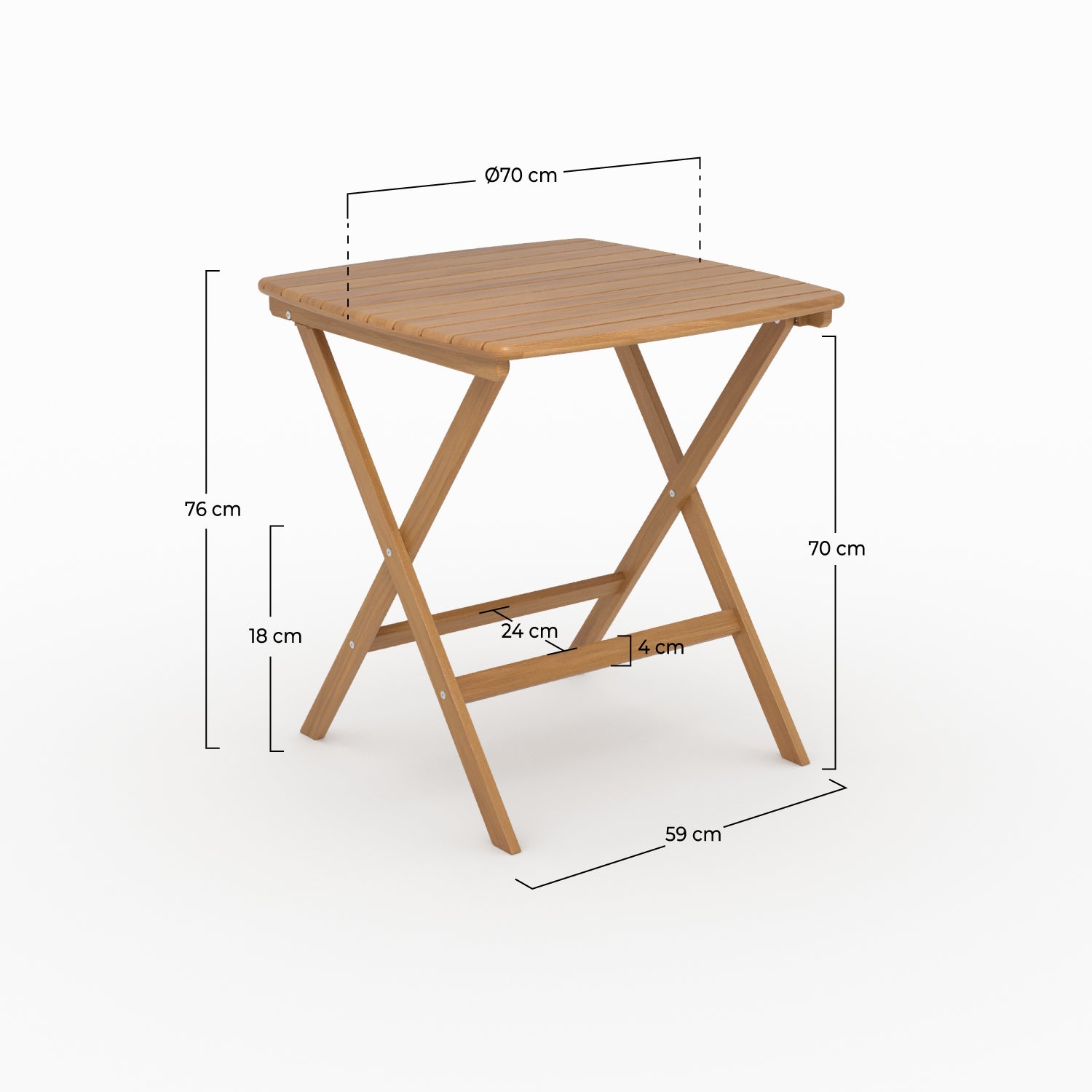 Table de jardin pliante carré en bois d'acacia huilé 2 personnes