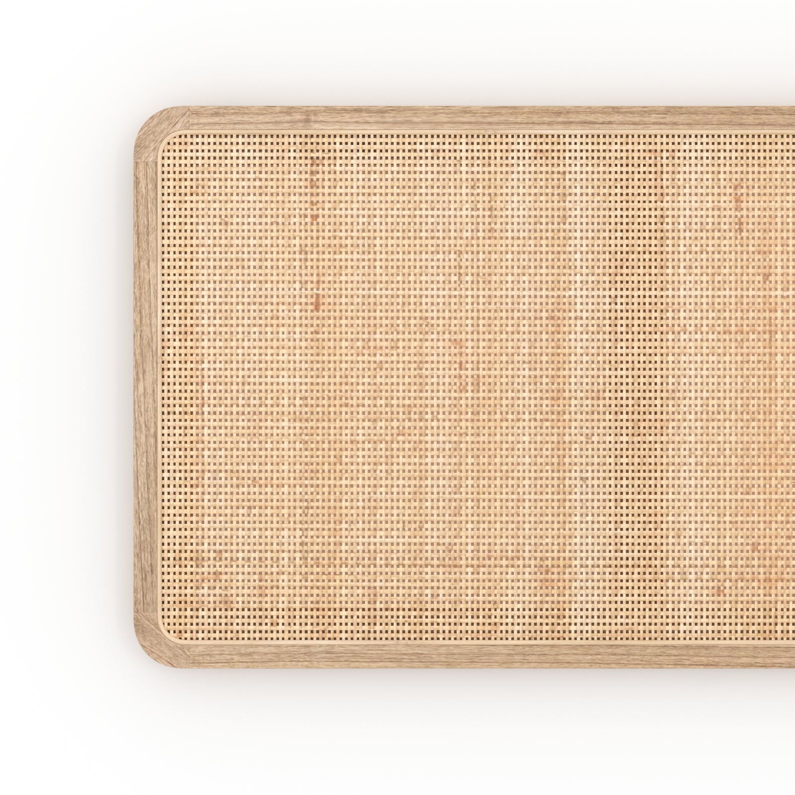 Le succès du rotin se confirme au fil des collections, comme en témoigne cette tête de lit. Cette valeur sûre de la déco est associée à du bois massif de mindi, essence exotique à la teinte claire. En dehors de son esthétique, elle est robuste, ce qui vous permettra d’en profiter au fil du temps.